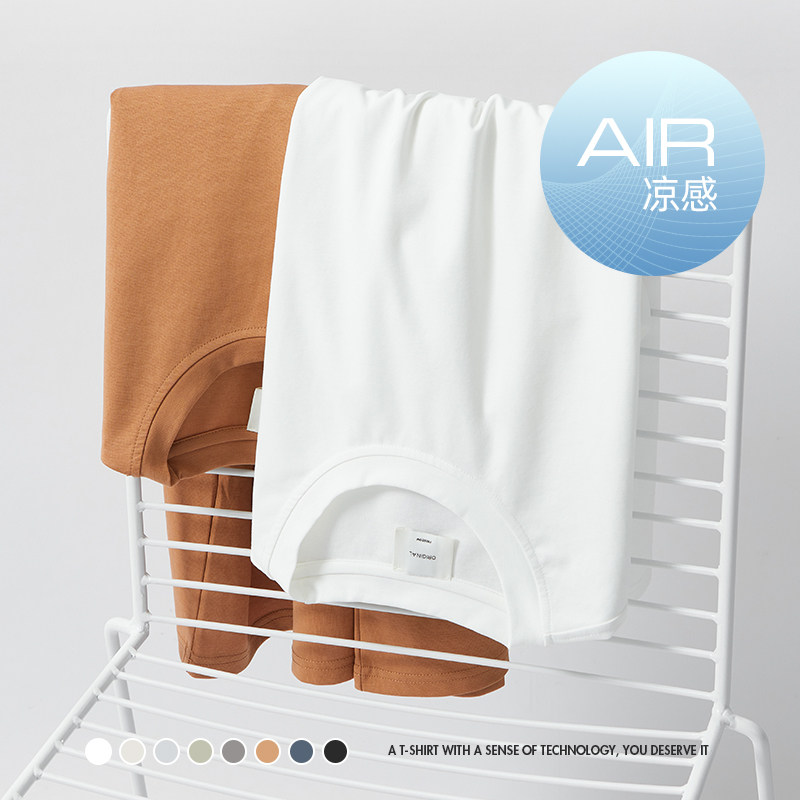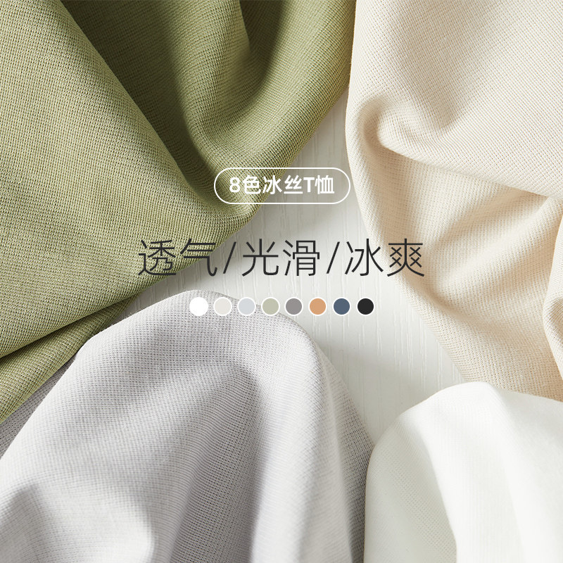 Hanska Ice Silk Slip Material Short Sleeve T-shirt Men Tide Sign Round Neckline Silk Light Cotton White Half Sleeve Pure Color Beating Bottom Inner Lap
