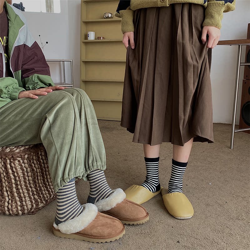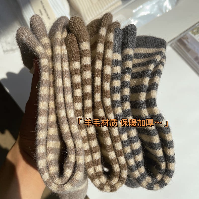 Nut Mommy Wool Brushed Striped Socks Woman Autumn Winter Ins Surge Thicken Warm Days Family of Pink Midbarrel Bubble Socks