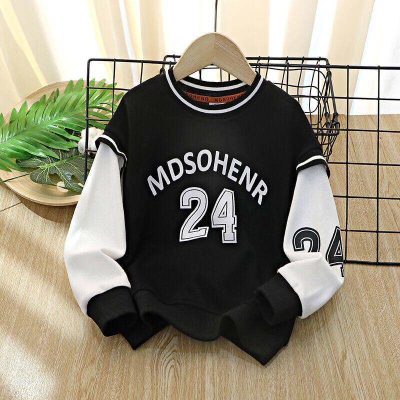 Boys' sweater spring and autumn new 2022 fried street children's fake two-piece female middle-aged children's sports and leisure basketball clothes are handsome