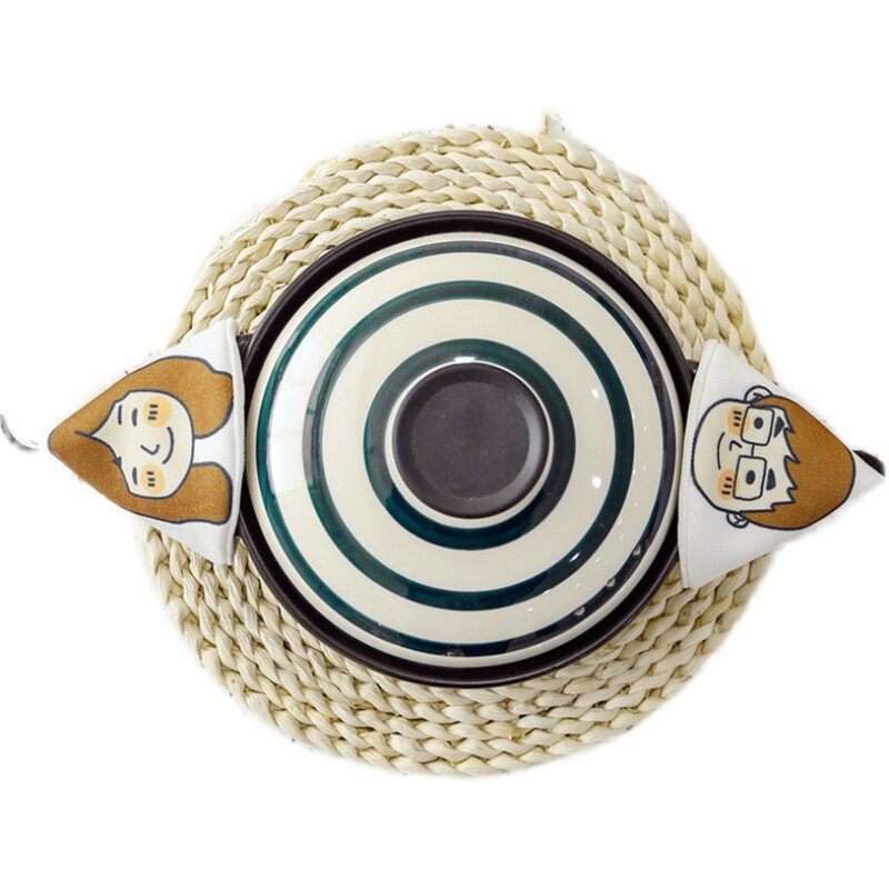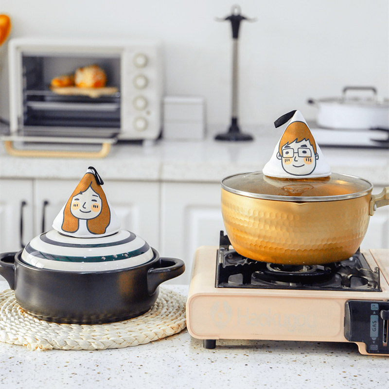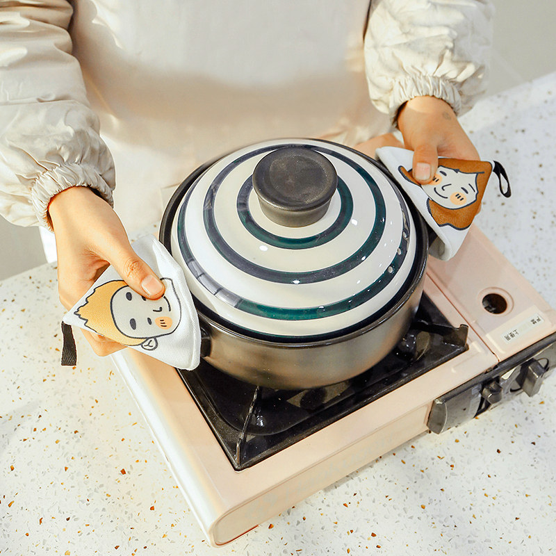 Anti-scalding slippery pot cap handle heat insulation kitchen Japanese-style triangle gloves high temperature resistant enamel pot cover heat-proof fabric artifact