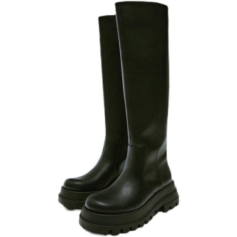 Spring and Autumn 2022 TRF Woman Shoes Black British Long Cartridge Shoes Knights Boots 13001811040