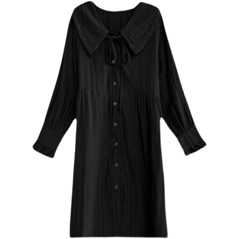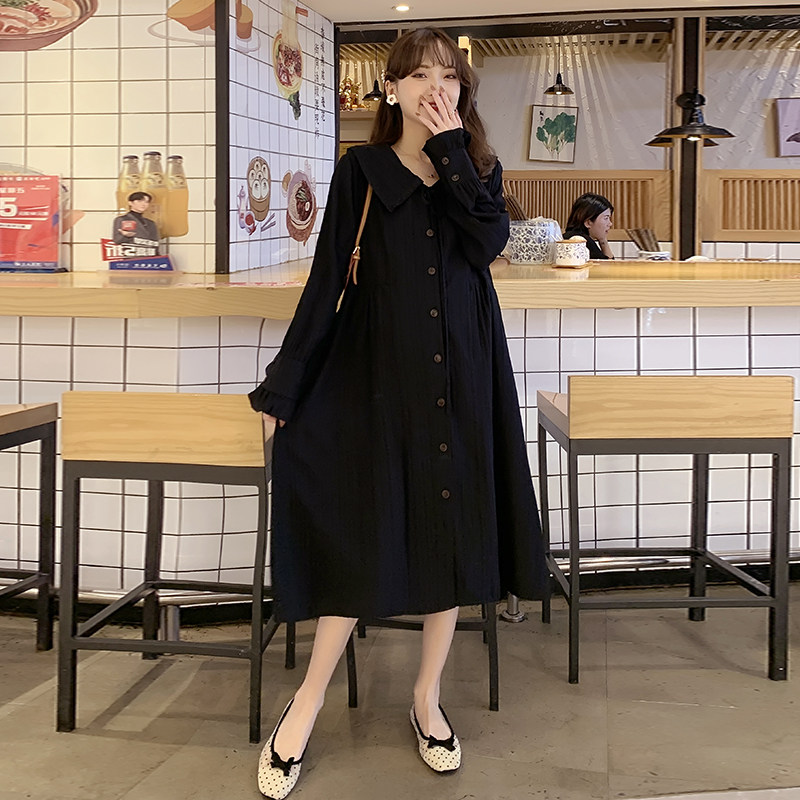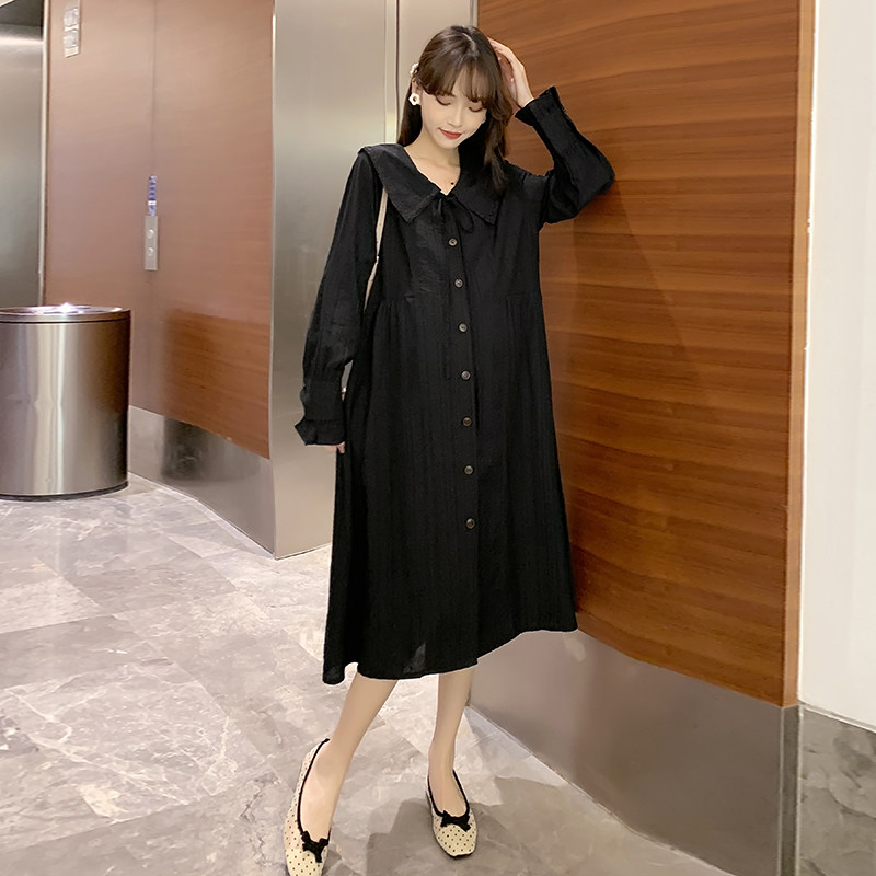 Pregnancy Woman Dress Spring Dress New Korean Version Long Version Long Sleeve Foreign Dress Loose Fashion Pure Color Doll Collar Shirt Skirt