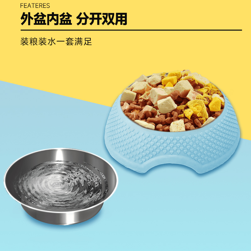 Two dog bowl dog bowl stainless steel pet bowl cat bowl drink bowl cat large basin supplies