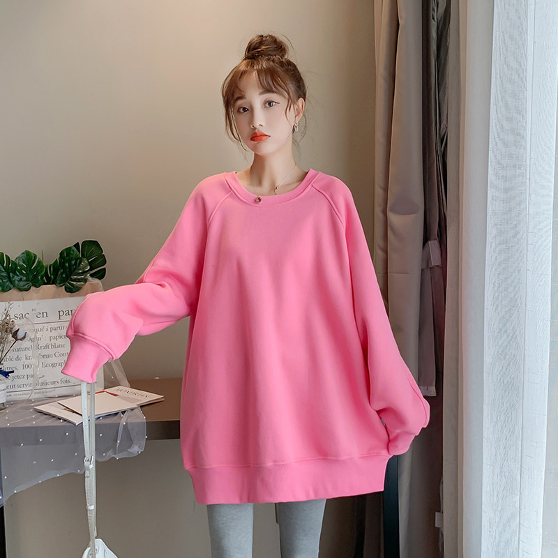 Pregnant Woman Plus Velvet Clothing 2022 Autumn Winter Clothing Suit Fashion New Loose Pure Cotton T-shirt With Long Version Round Collar Blouse