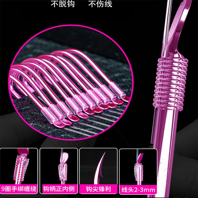 Pink sleeve tied sub-line double hook finished set golden sleeve Izu sleeve hook crucian carp hook 20 boxes of fishing supplies