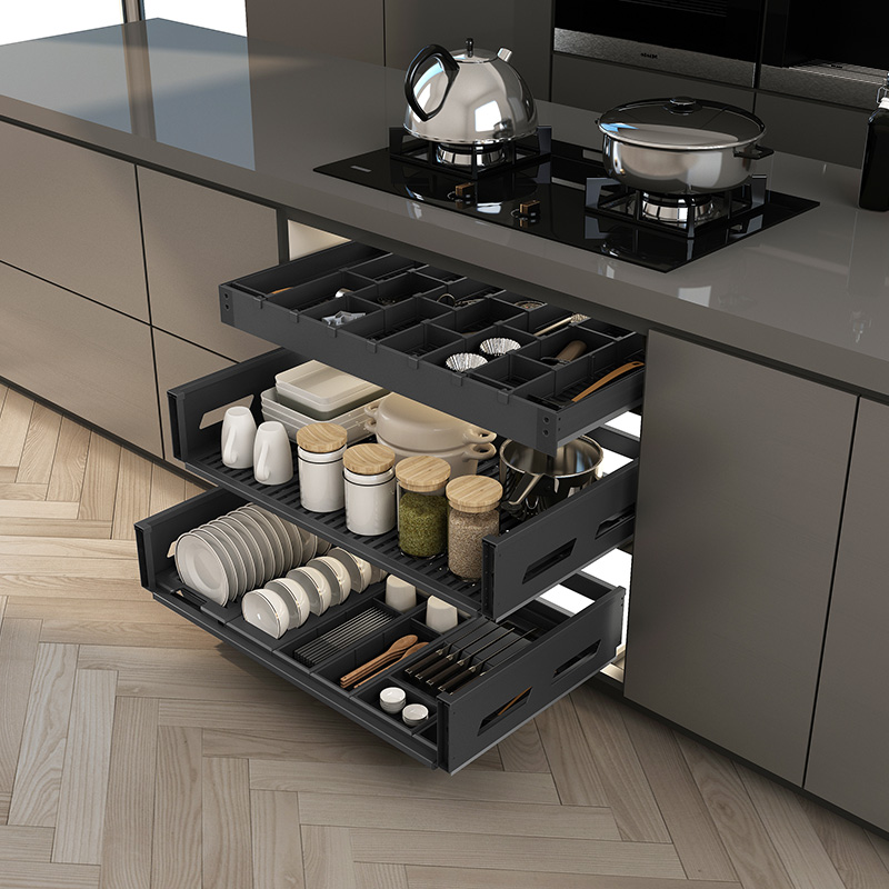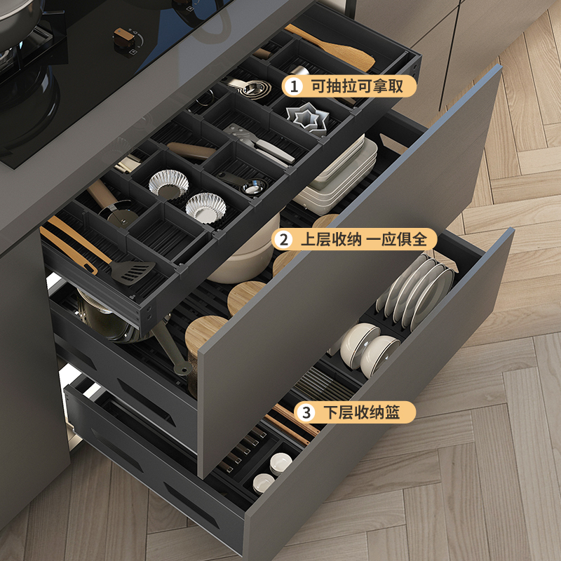 Keigra basket kitchen overall cabinet drawer type double-layer storage dish pot basket built-in storage door type overall cabinet