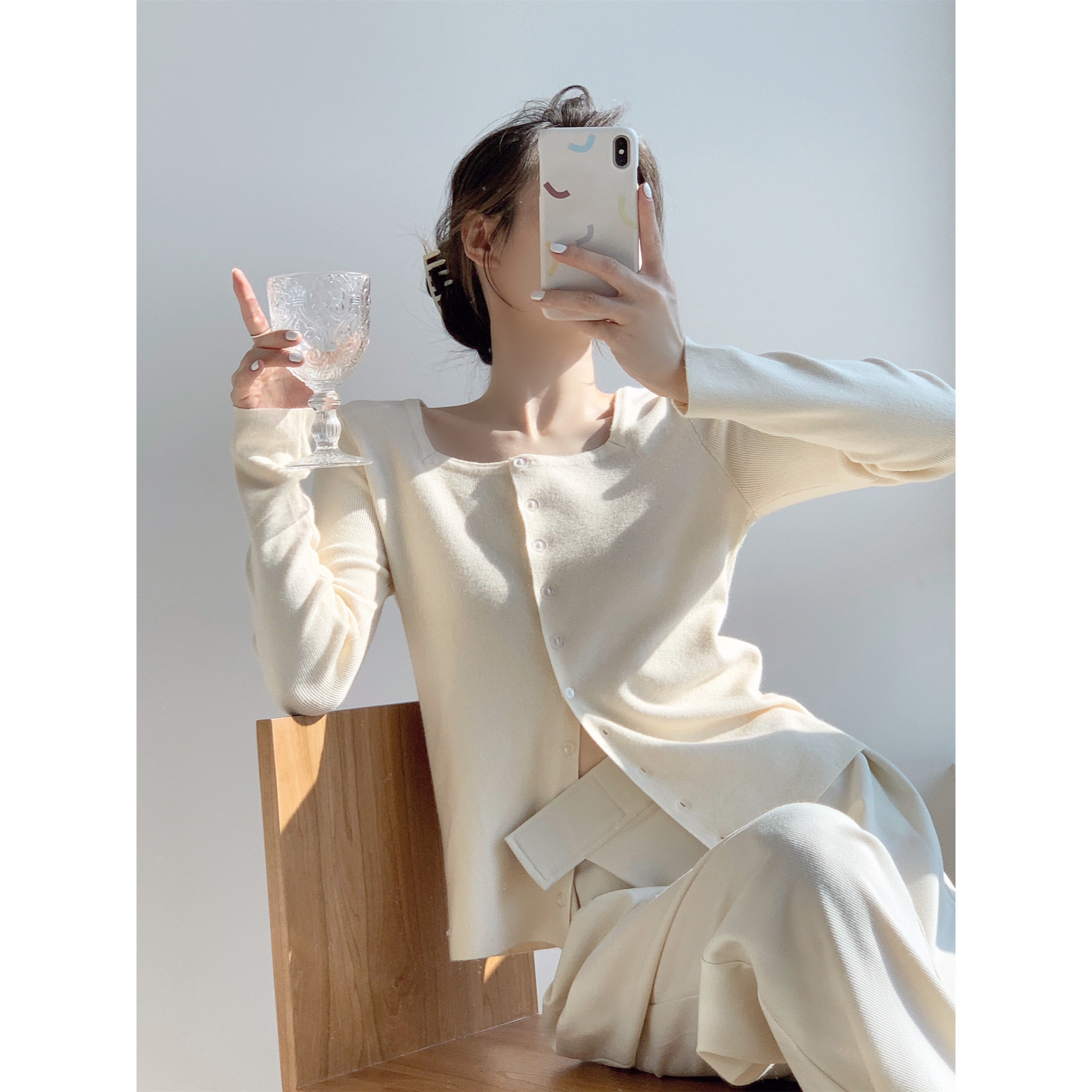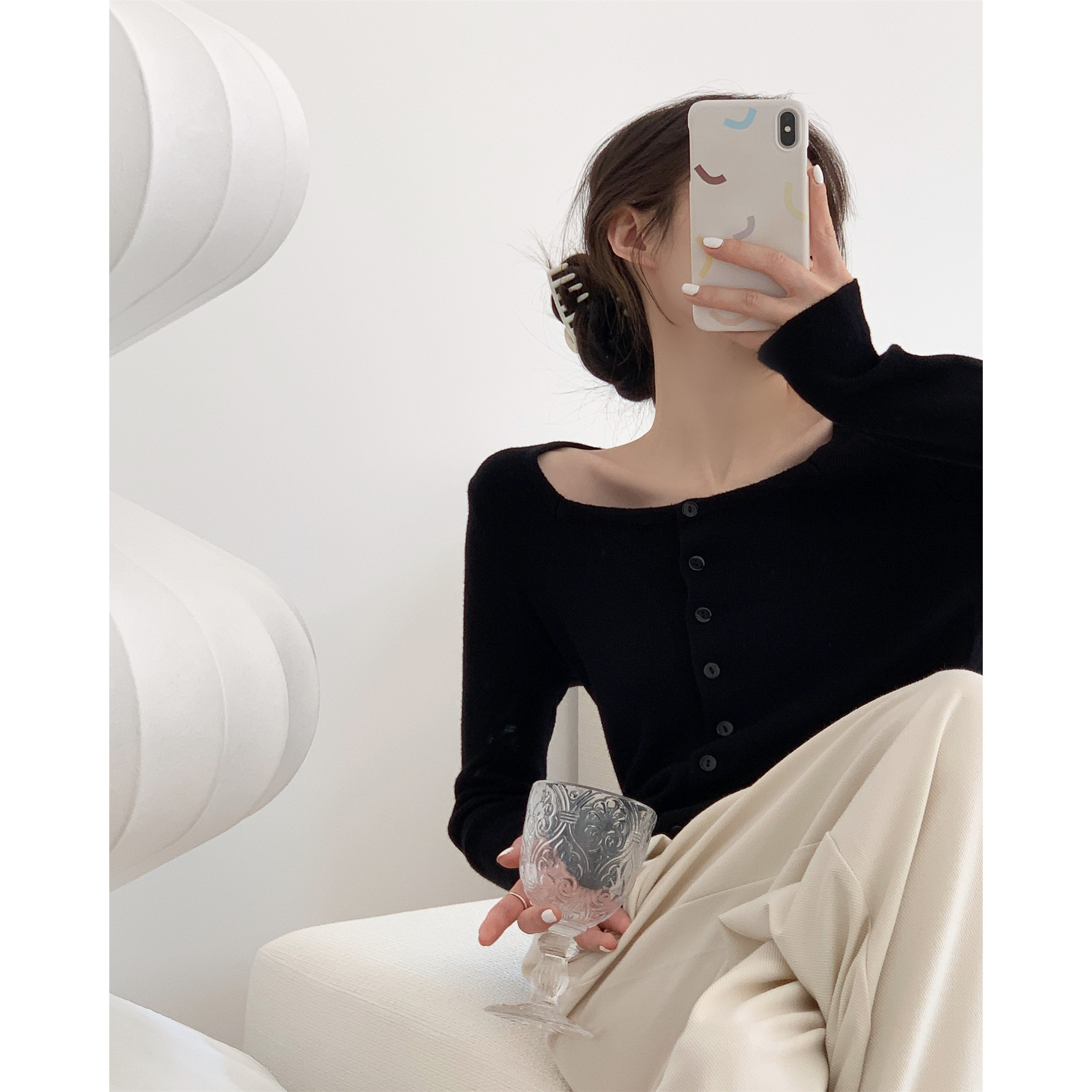 ICTS You are my underwater moon, tri - color into French gentle, elegant, small - tip slip knitting shirt