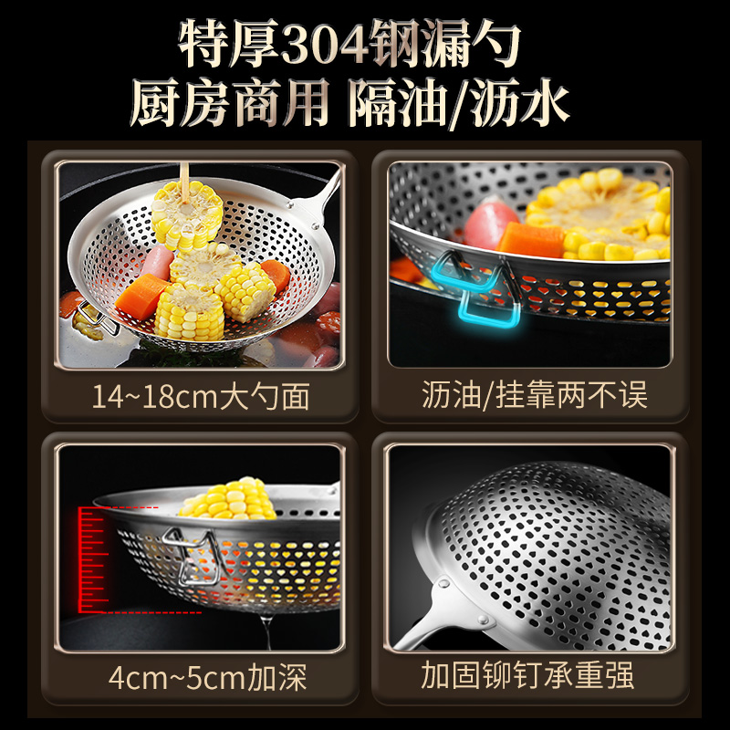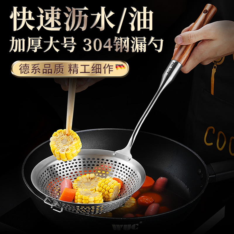 304 stainless steel leaking spoon large size filter screen fried home kitchen wing-fence mesh leakage mixed with water dumplings spoon