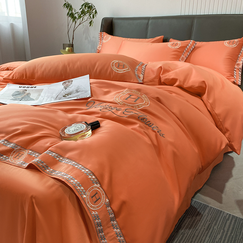 Love Horse Orange Bed Four Pieces Of Pure Cotton Full Cotton 100 Light Lavish Quilt Cover All Season Autumn Winter Bed Linen Upscale Bed 4-Taobao