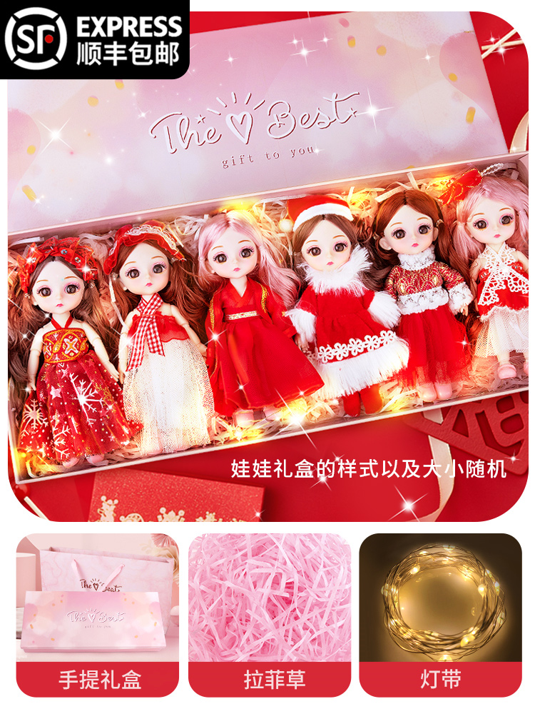 6 Fuli Red (light belt gift box) 6 wedding princesses (light belt gift box) 6 ancient princesses (light belt gift box) 6 pink dream princesses (light belt gift box) 6 dress princesses (light belt gift box) children
