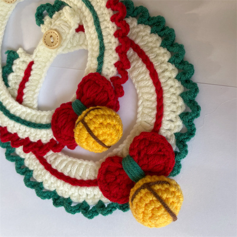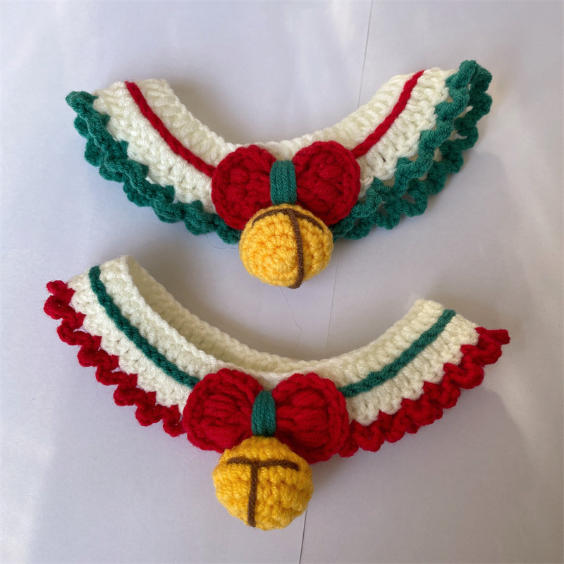 Kitty puppies Christmas knit Neck Pets Neckline Fur Line Saliva scarlet New Year's Eve Ornament Bib Collar of the Flower Bell