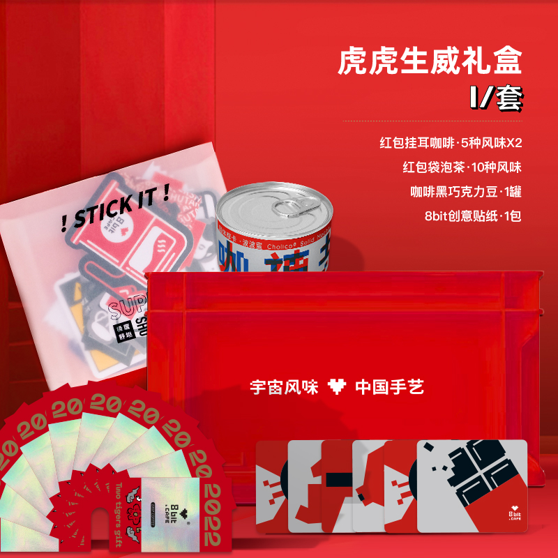 Eight Bits Tiger Tiger Raw Willy Gift Box Two Tigers Small Red Box Ear Hung Coffee Tea Chocolate Bean Stickers