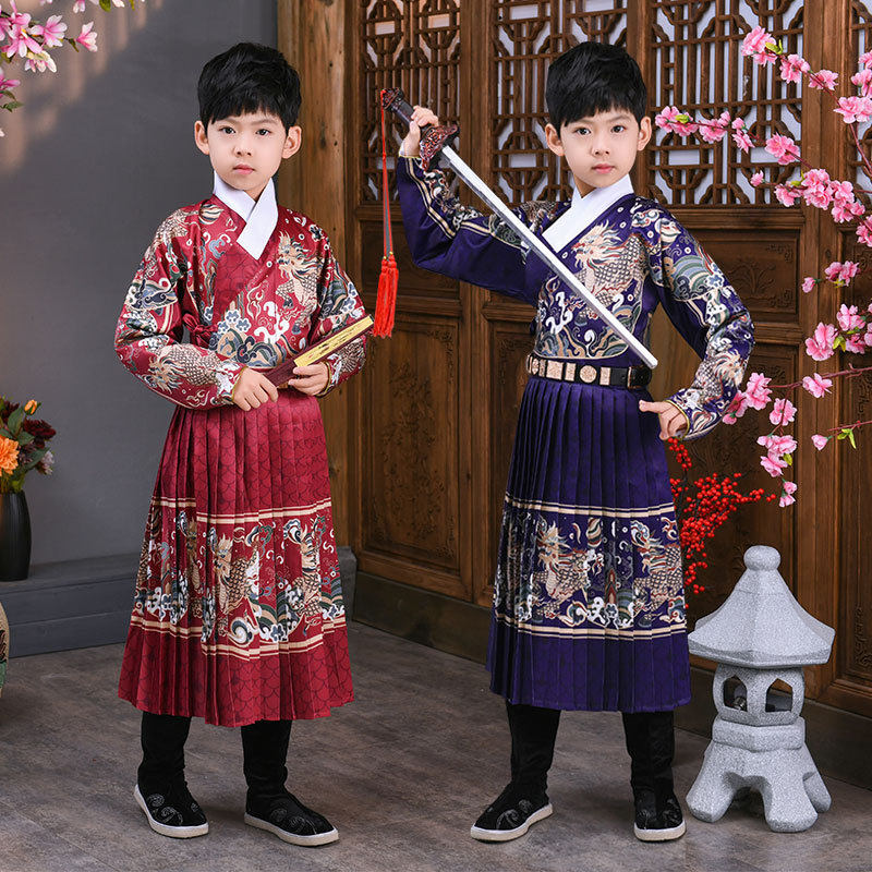 Children's Hanfu ancient costume boys Chinese style Tang suit Jinyi Wei Feiyu suit Kylin Ming system cross-collar girls winter clothing