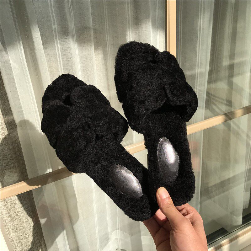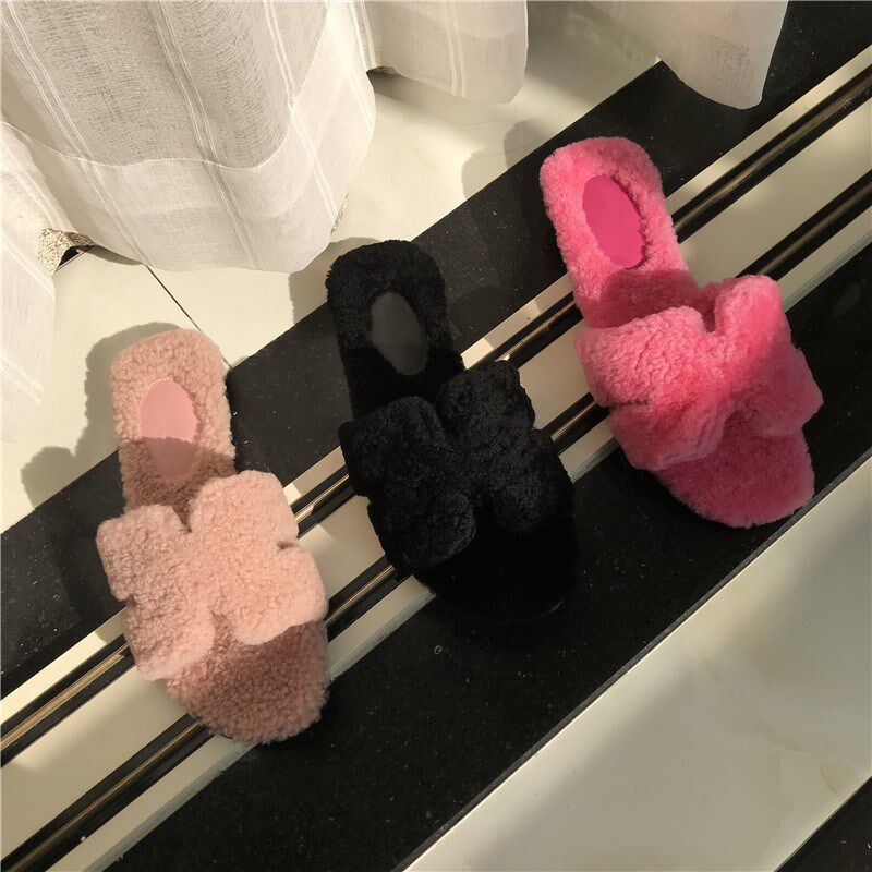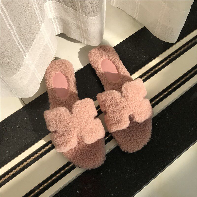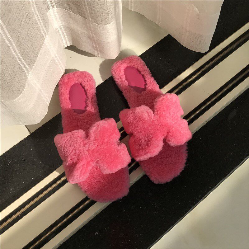 Sheep skin hair one new flat comfortable Net red plus fluff wool slippers women wear spring and autumn new fashion all