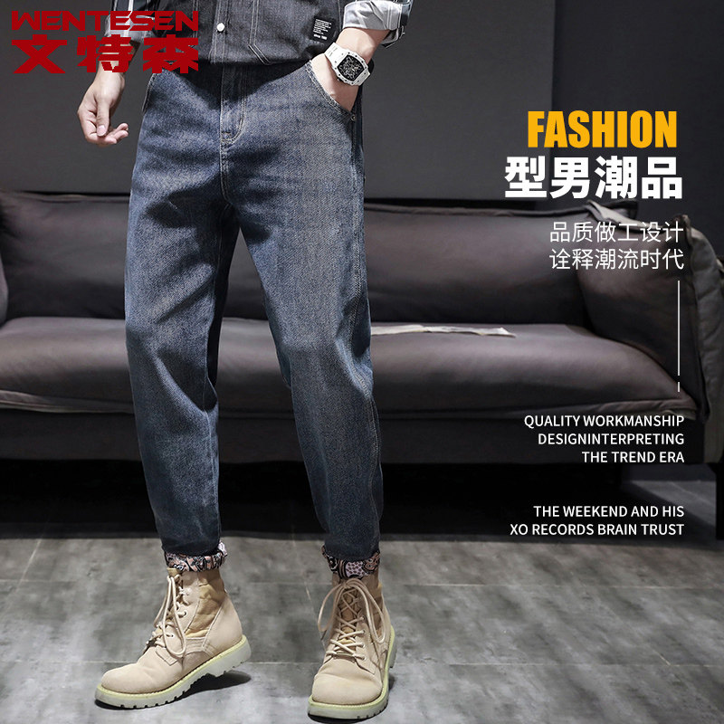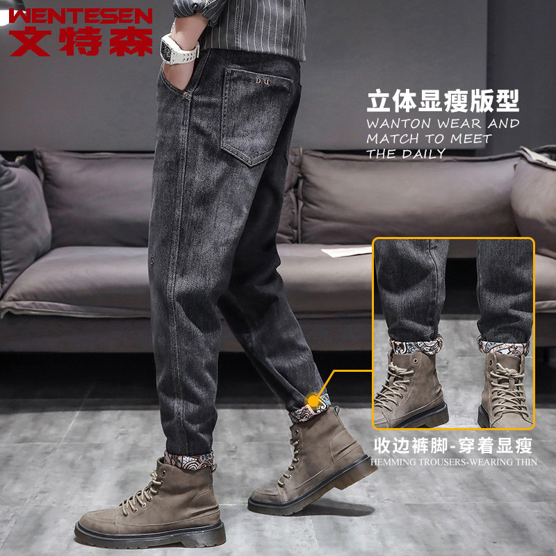Korean version Trend casual 100 hitch ride-hailing men's pants spring summer new youth jeans Men's body elastic long pants
