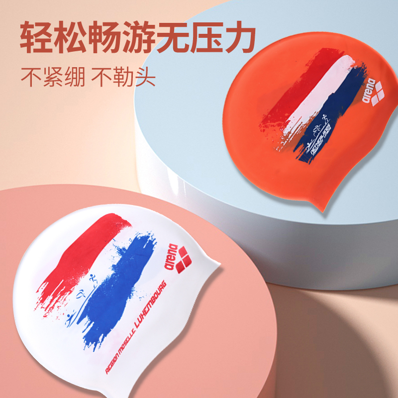Swimming cap for men and women, waterproof, non-stretching, long hair, special ink, painted pattern, fashionable and personalized, professional silicone swimming cap