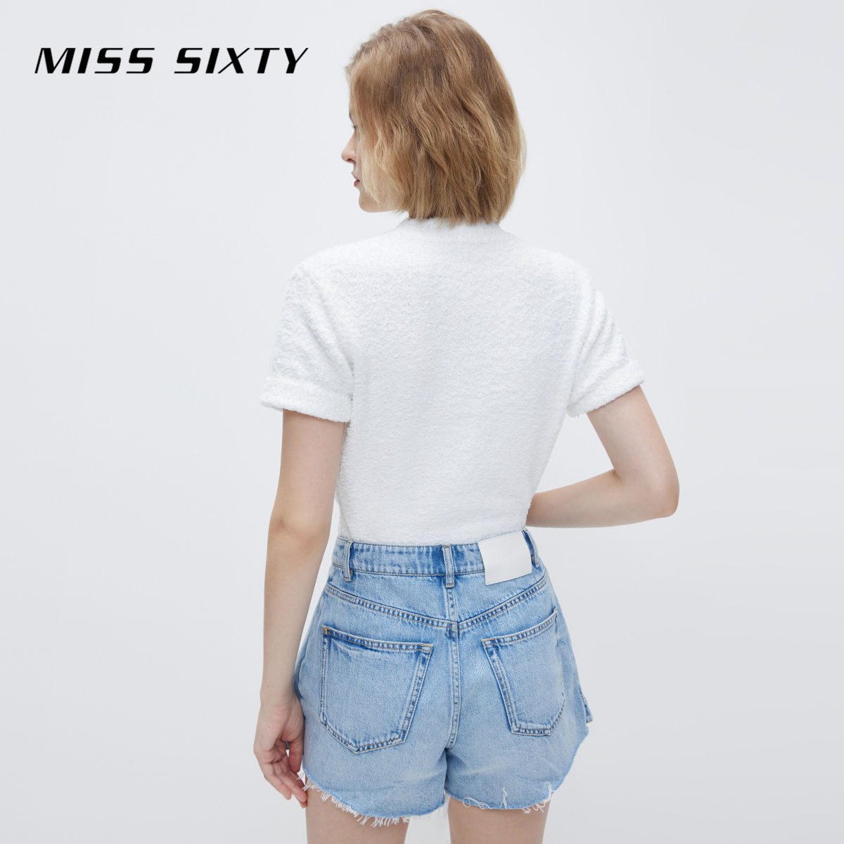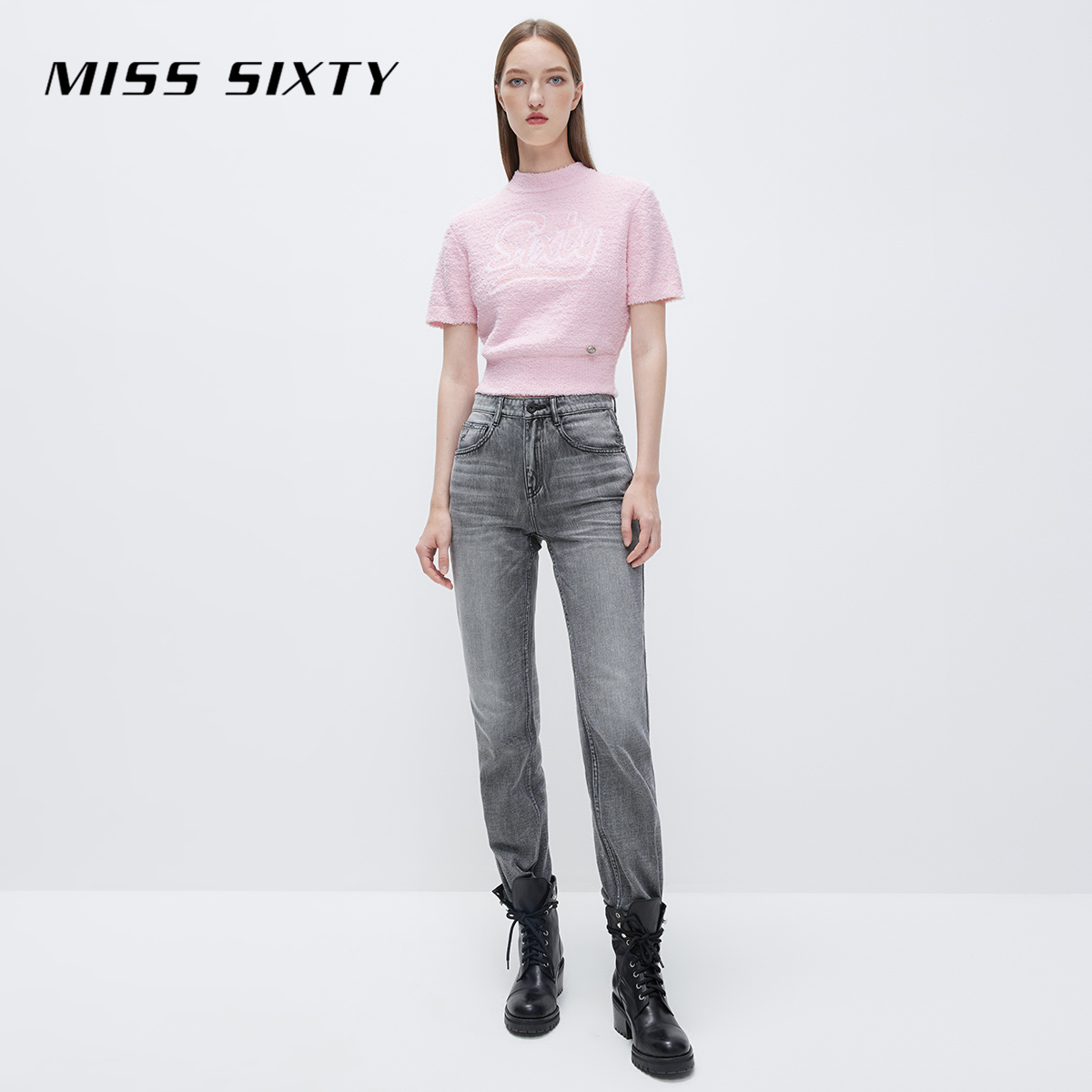 Miss Sixty2022 spring new woolen sweatshirt female letter jacquard round collar short sleeve 6W1RJ7511000
