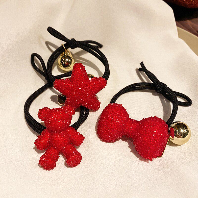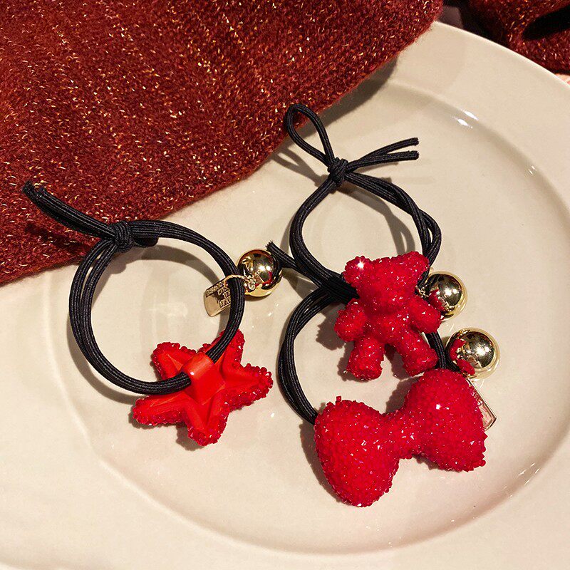 South Korea's Dongdaemun red New Year hair ring hair ring cute bear tie hair rubber band girl sequin hair ring hair accessories