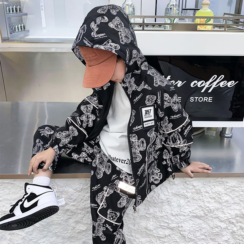 Children's Clothing Boy Spring Clothing Suit 2022 New Foreign Pine Boy Casual Reflective Two Sets Children Spring And Autumn Sports Clothes