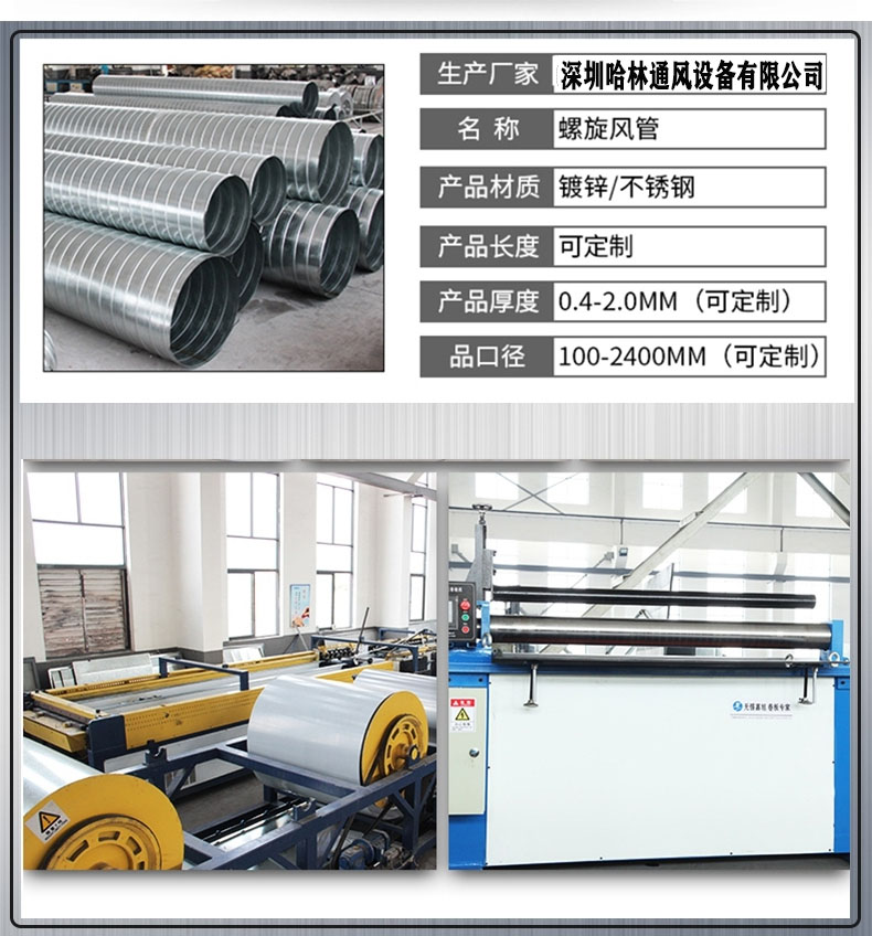 Shenzhen galvanized spiral tube circular air exhaust 304 stainless steel welded air pipe white iron galvanized air pipe