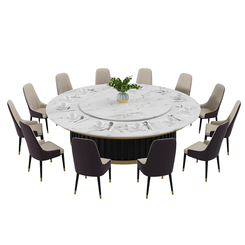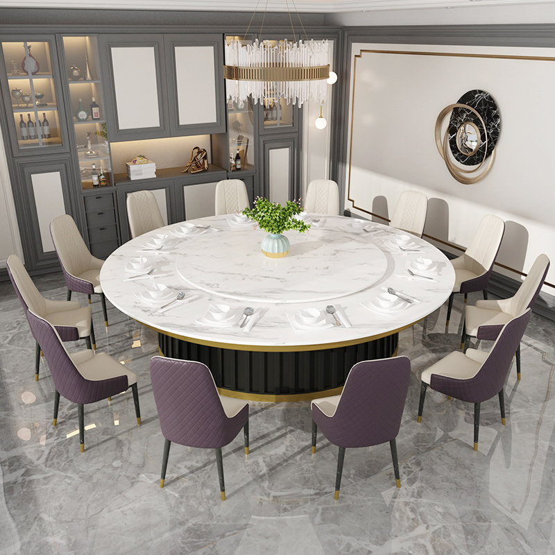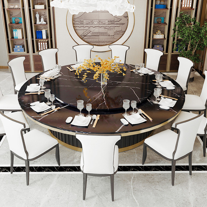 Hotel slate dining table big round table hotel club electric turntable 15 people 20 people new Chinese marble hot pot table
