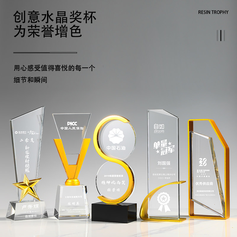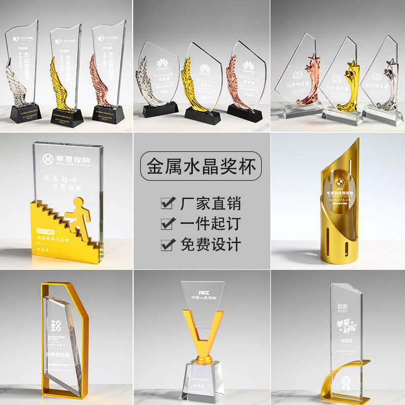 2022 new metal crystal trophy custom lettering custom high-end honor medal annual meeting teacher's day trophy