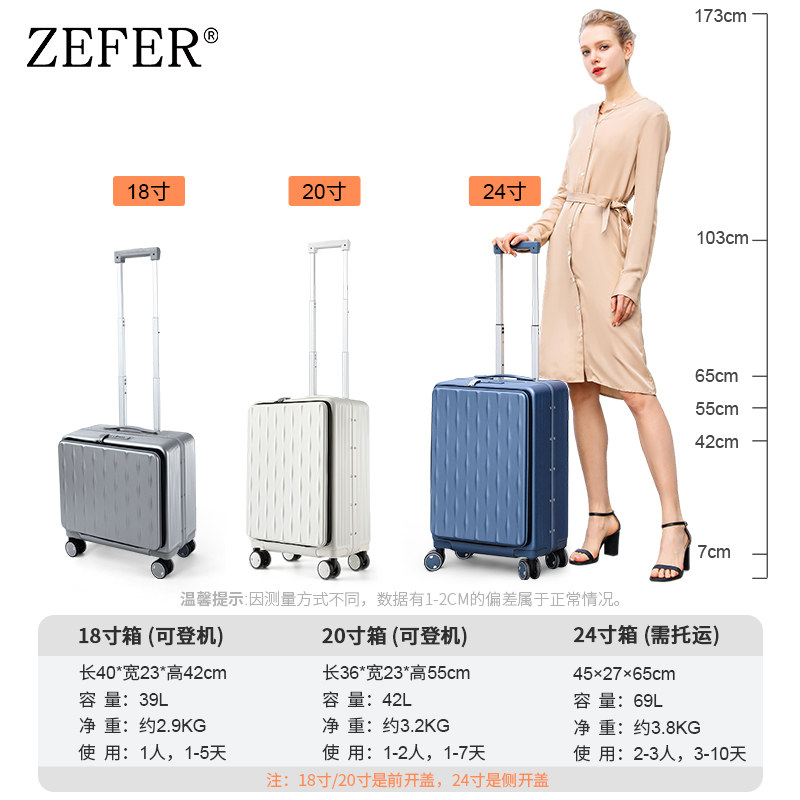 18-inch case (suitable for 1-5 days travel 15 6 inch computer bit) front open cover 20 inch case (suitable for 1-7 days travel 15 6 inch computer bit) front open lid 24