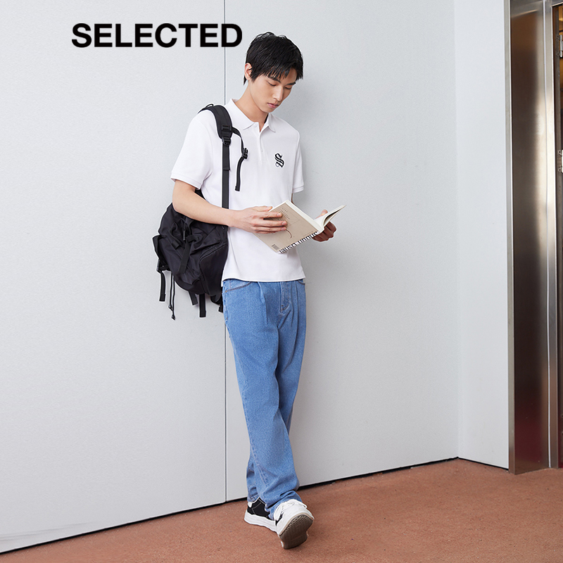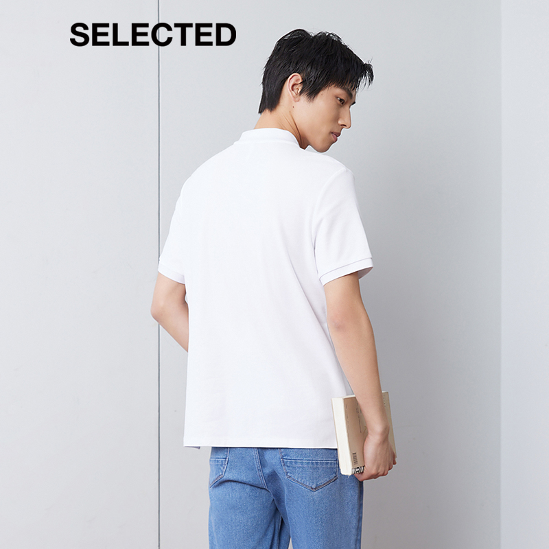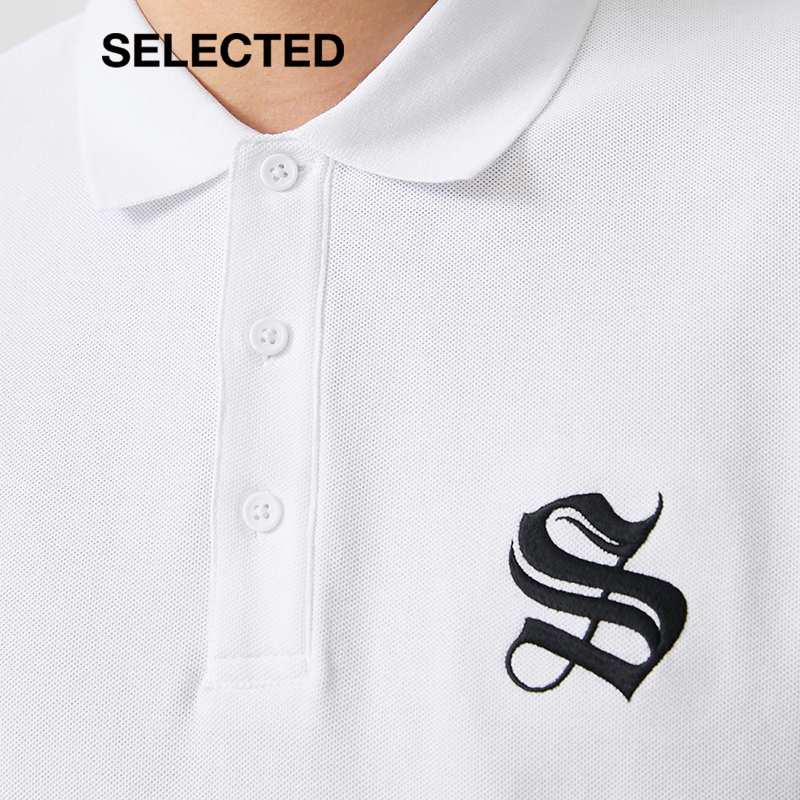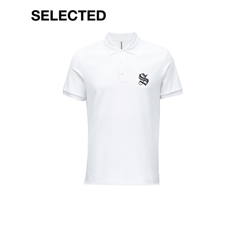 SELECTEDSELECMED spring summer new comfort pure cotton trendy embroidery logo pure colour short sleeve turnover T-shirt male