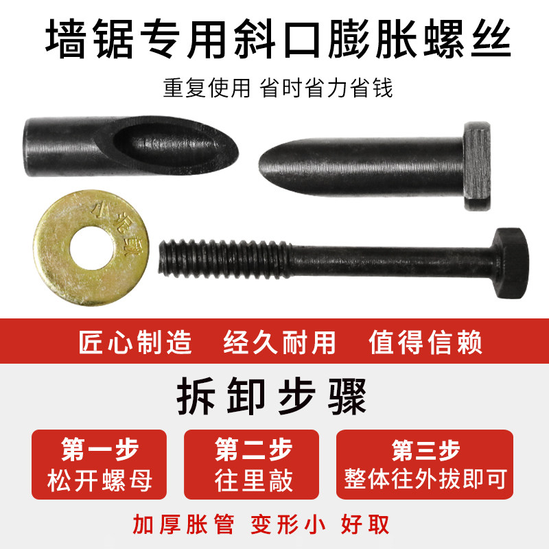Wall saw expansion screws are reused to disassemble the inner puffy electric hammer, drill holes, expand the tube expansion bolts, and fix the oblique thick wire many times.