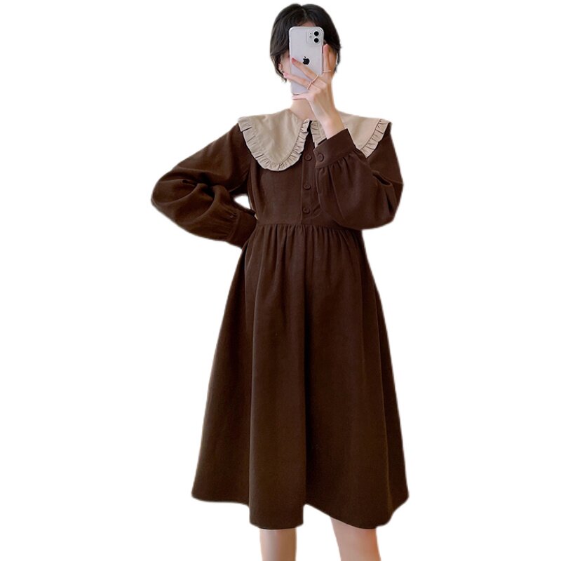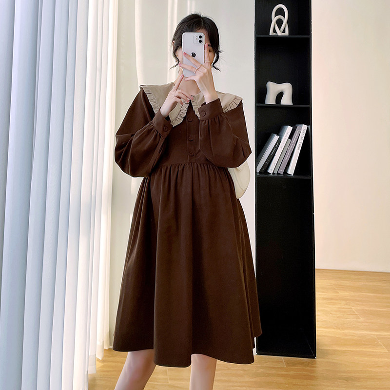 Pregnancy Woman Dress Spring Dress New Korean Version of the Han version of the dolls collar the dolls with large size and slim length sleeves skirts