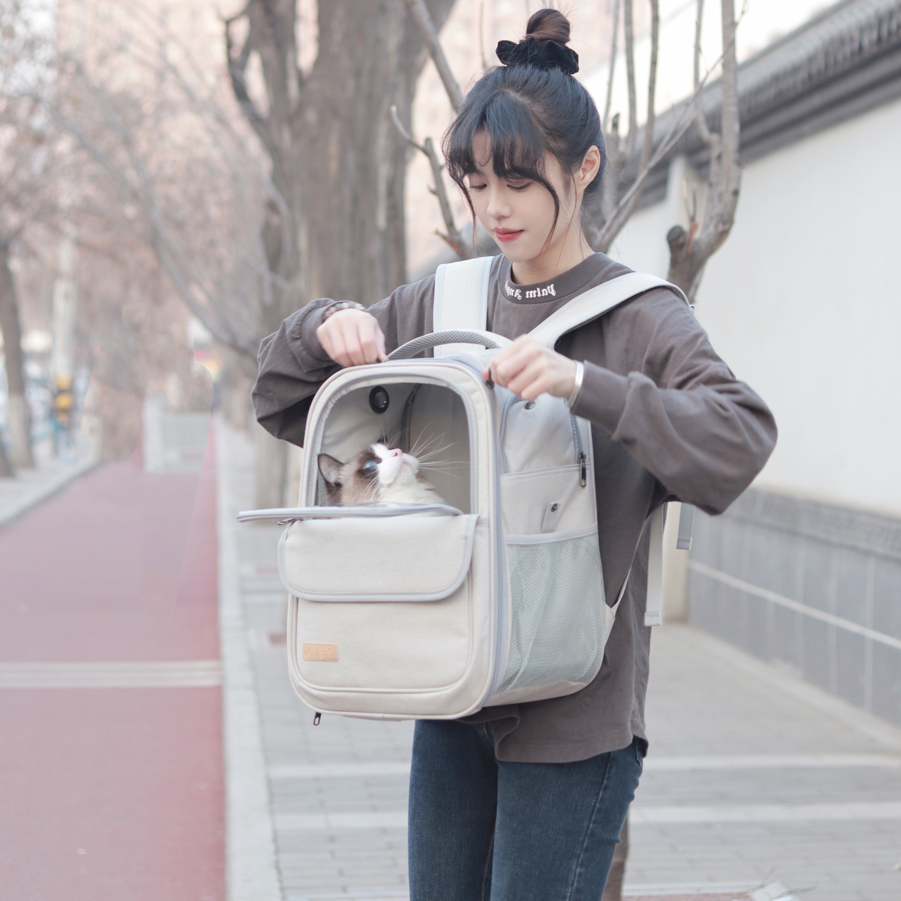 Fujiwara cat bag go out portable cat school bag shoulder pet transparent bag summer large-capacity cat foldable bag
