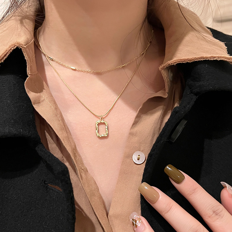 Double-layer stacked square pendant necklace autumn and winter temperament advanced light luxury niche ins personality sweater vests chain