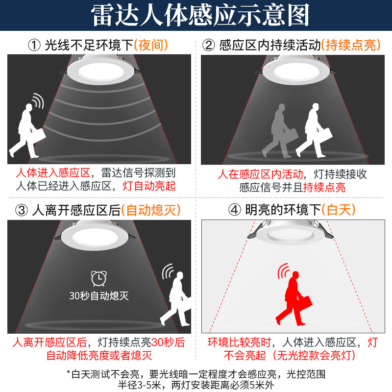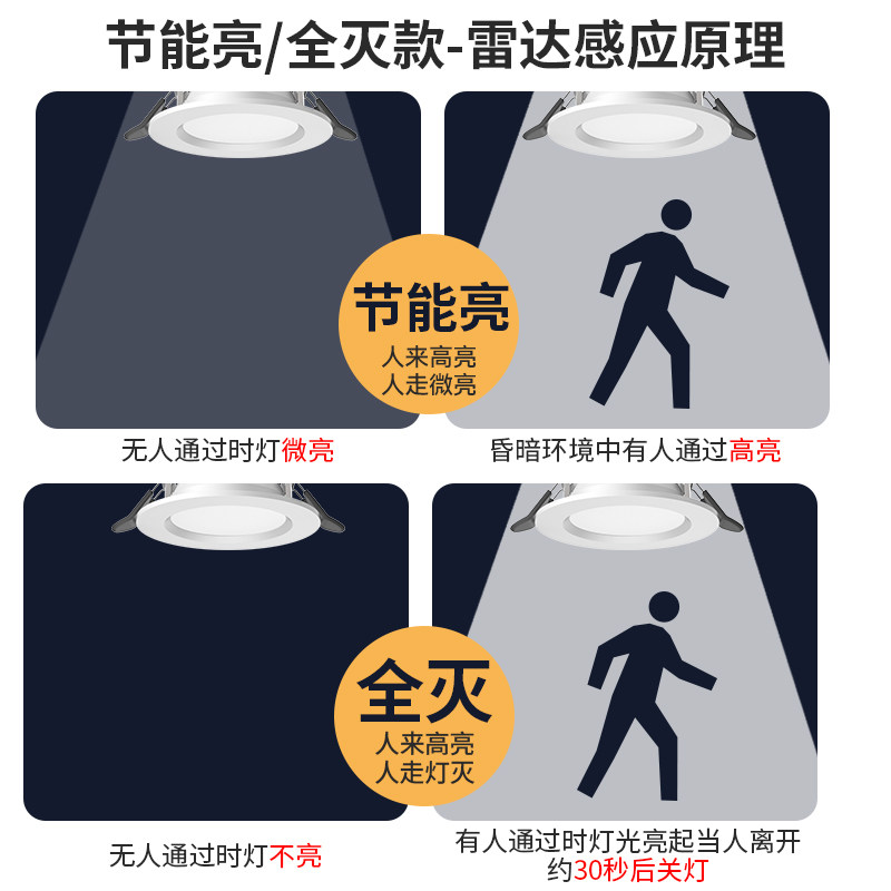 5 5W radar sensing white light (with light control full extinguishing) hole 7 5-9 5cm 10W radar sensing white light (with light control full extinguishing) hole 9 5-12cm 5 5W radar