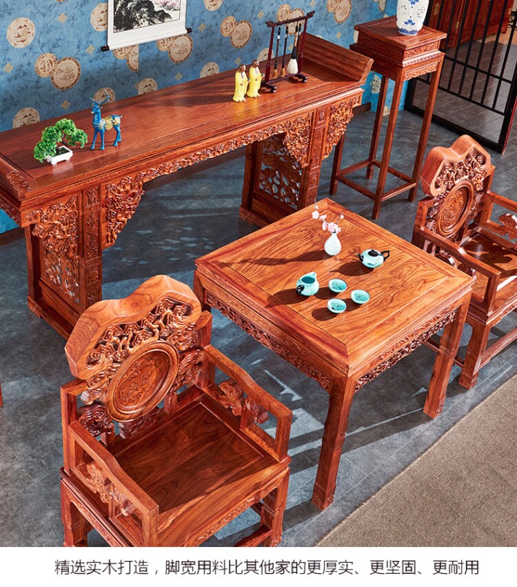 Red Wood Furniture Chinese Innate 6 pieces of rosewood Pear Wood Lucid Glossy chair Hedgehog Purple Sandalwood case for table Chinese Buddhist Cabinet Hall Deity