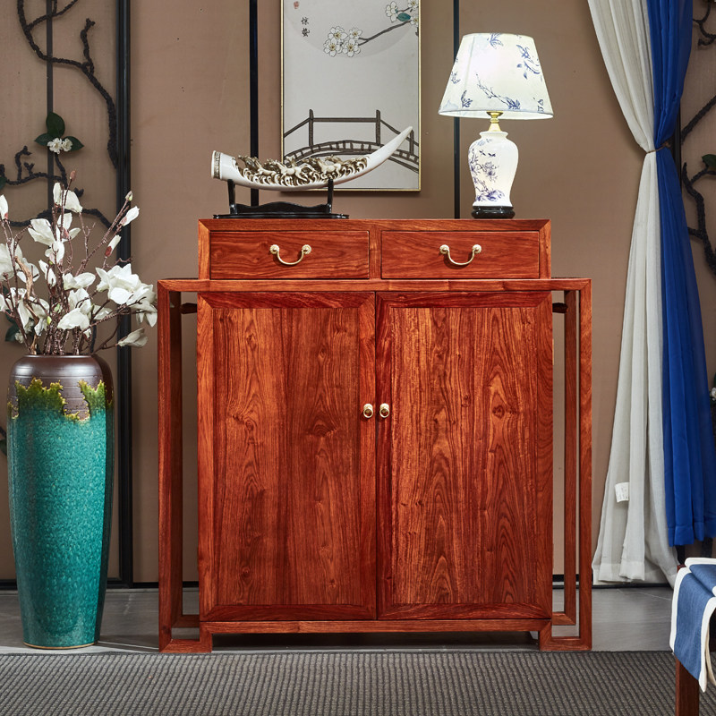 Red Wood Shoe Cabinet Tingle Hedgehog Rosewood Flowers Pear Wood Shoe Rack Imitation Ancient New Chinese Solid Wood Genguan Cabinet Door Hall Containing Cabinet
