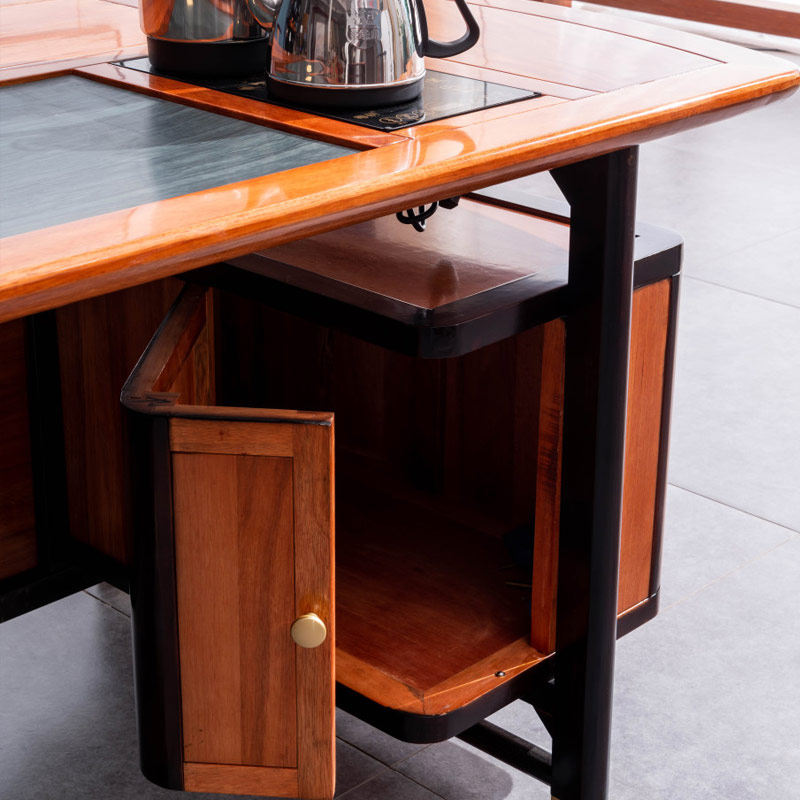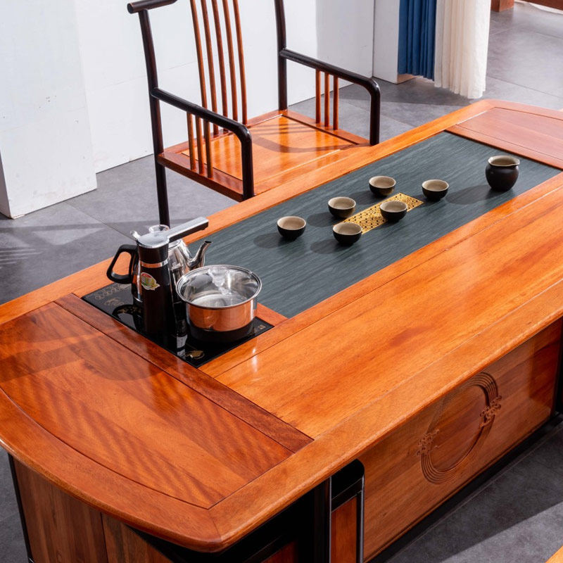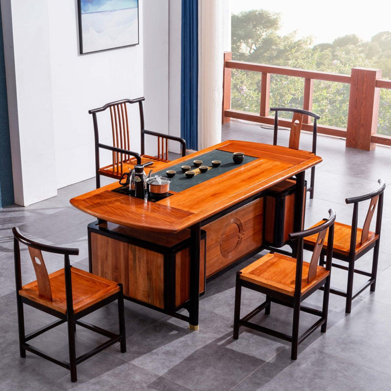 New Chinese solid wood tea table and chairs combined office table and chairs for guest tea table office tea table Tangwood Golden Flower Pear