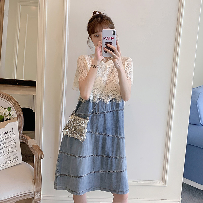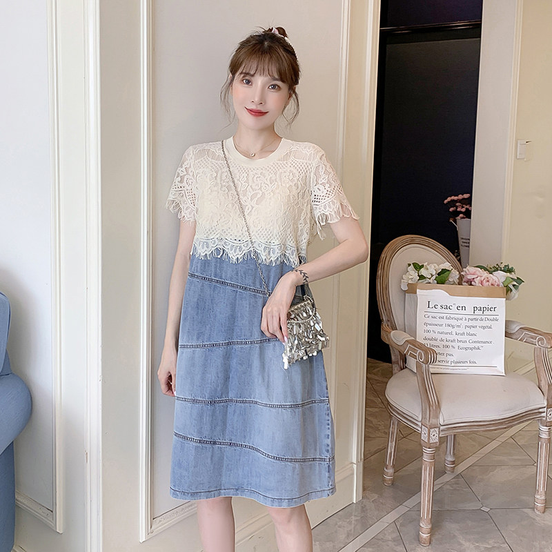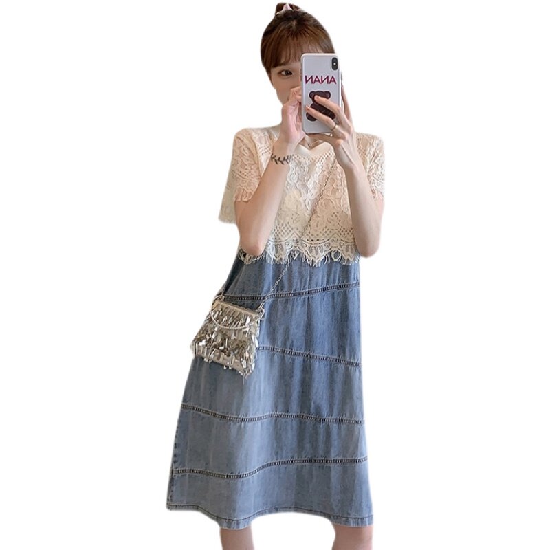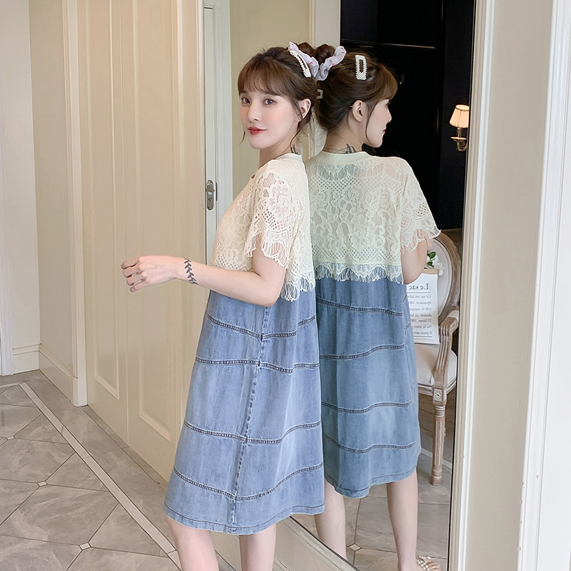 Spring and autumn loaded with new large size Size Gestation of Pregnant Women With Long Version Lei Silk Splicing Foreign Bottling Momma Spring Hit the Bottom Skirt Tide