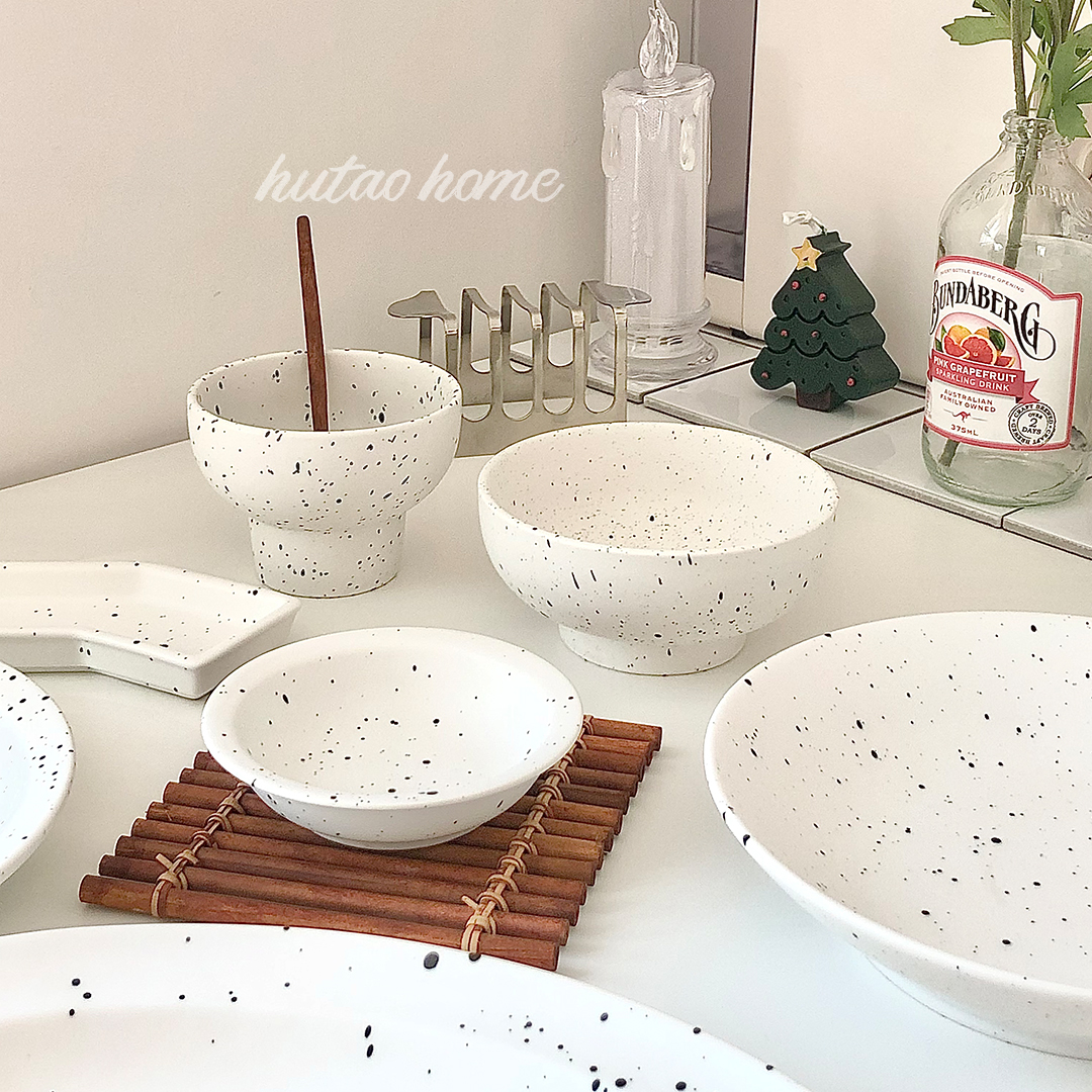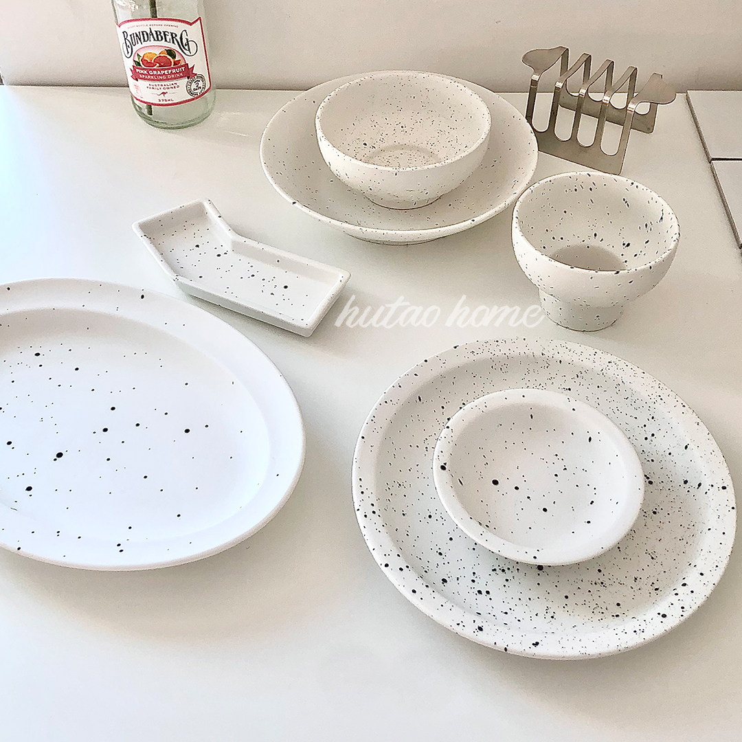 Ins wind blogger with the same western food tableware set splash ink matte underglaze color breakfast plate dessert plate Japanese rice bowl