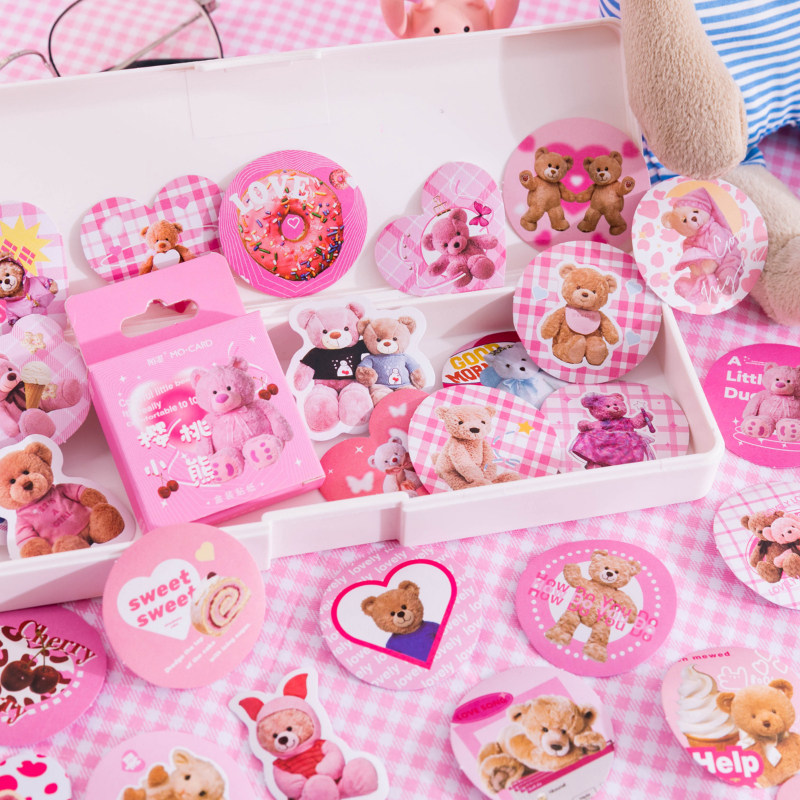 Stranglebox Mount Sticker Small Bear Paradise Cute Cartoon Plush Teddy Bear Handbill Diary decoration without dry adhesive sticker