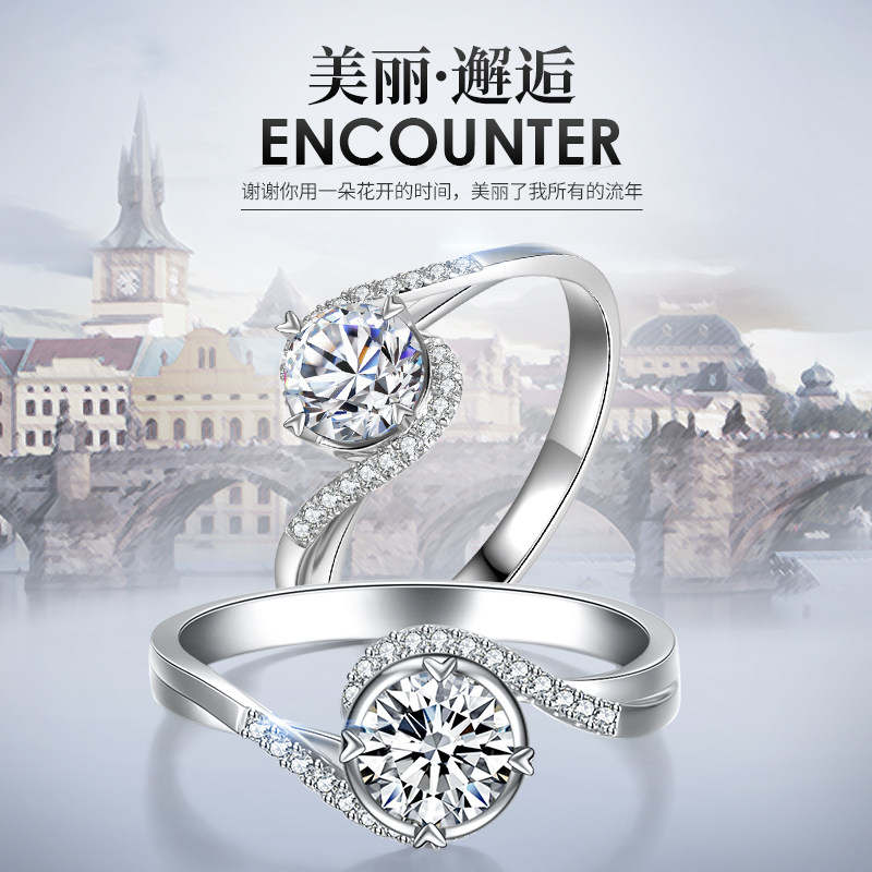 Shihua jewelry white 18K gold wedding diamond ring 30 points diamond ring group set female ring 50 points proposal twist arm diamond ring