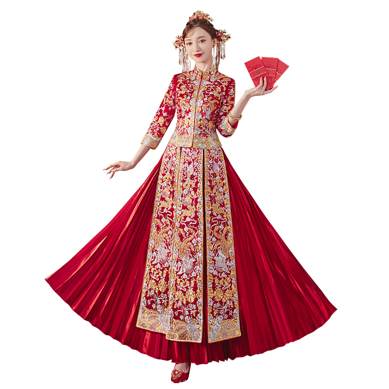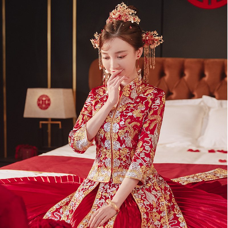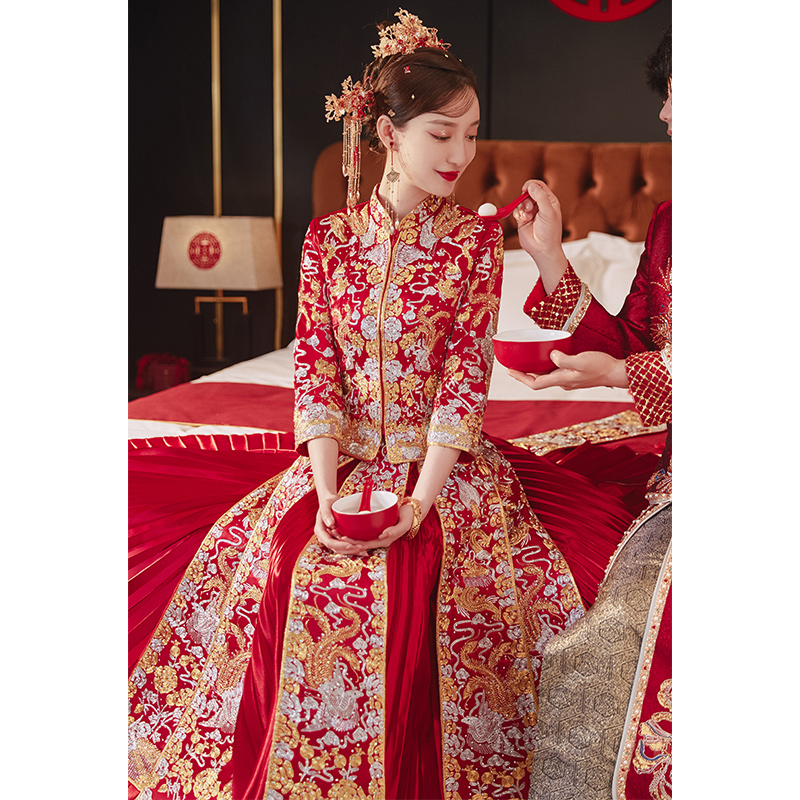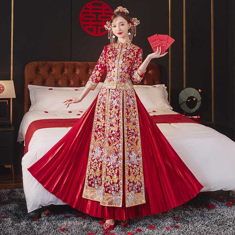 Xiuhe clothing bride 2022 new wedding dress dragon and phoenix hanging emperor toast clothing Chinese wedding dress out of the pavilion autumn