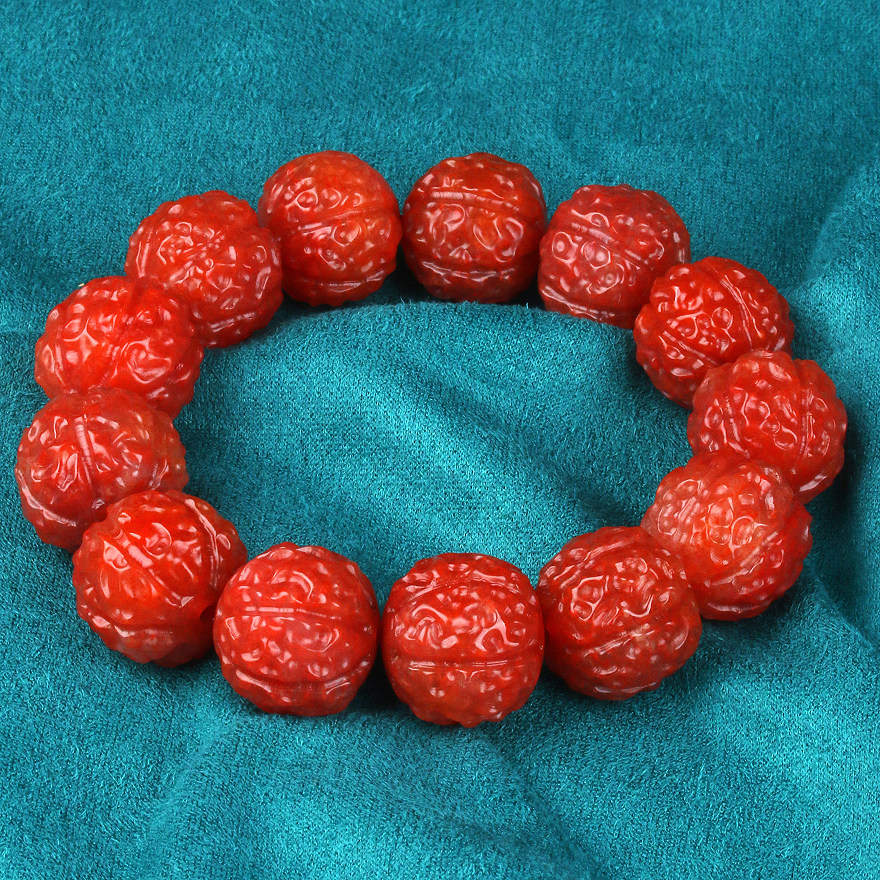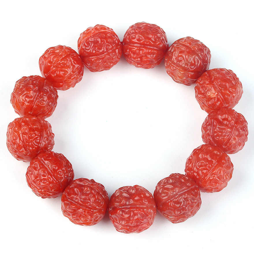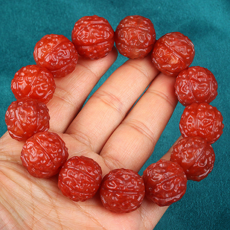119 07 gr pieces of walnut beads] finely carved-persimmon red Zee good South red Manau hand-in-hand