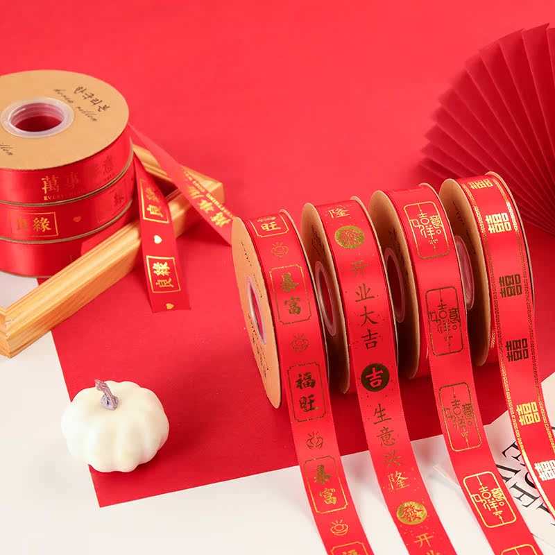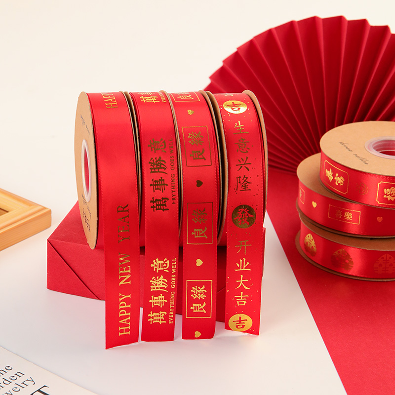 Wedding Happy Character Red Ribbon With Fu Character Chinese Color Ribbon New Year Gifts Flowers Packaging Satin With Handmade Diy Materials
