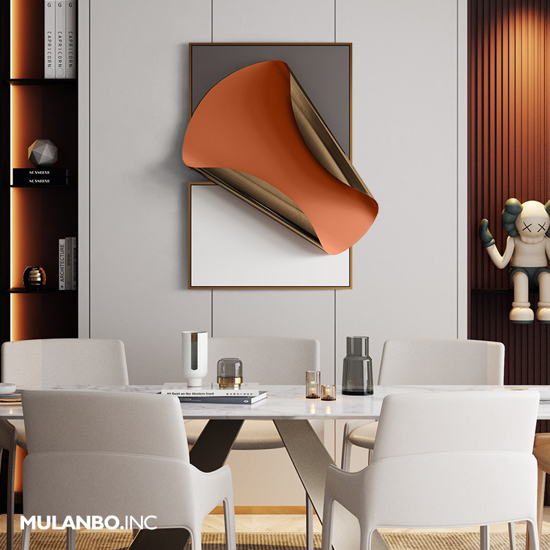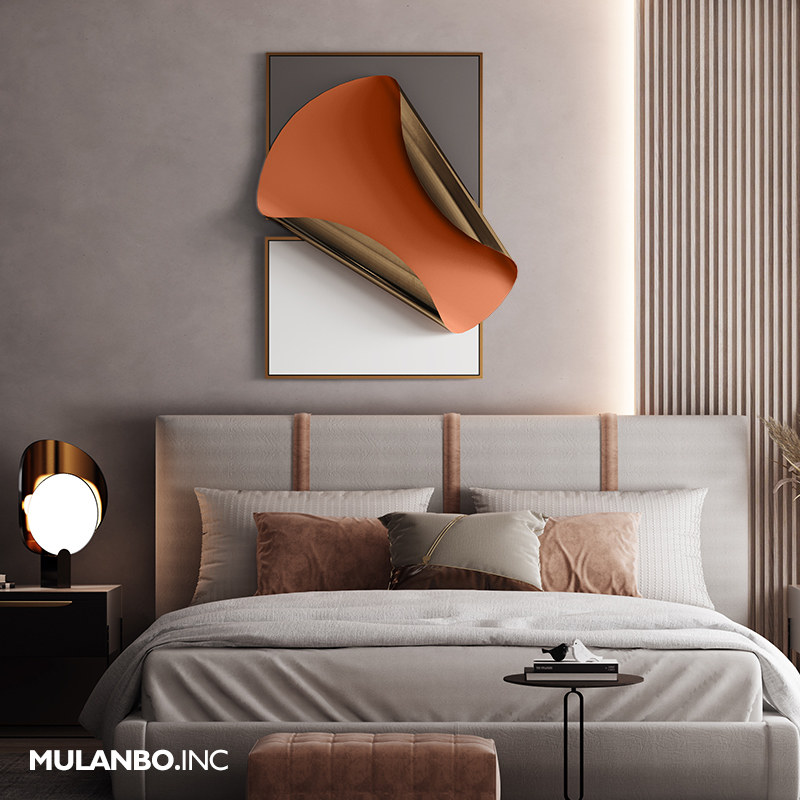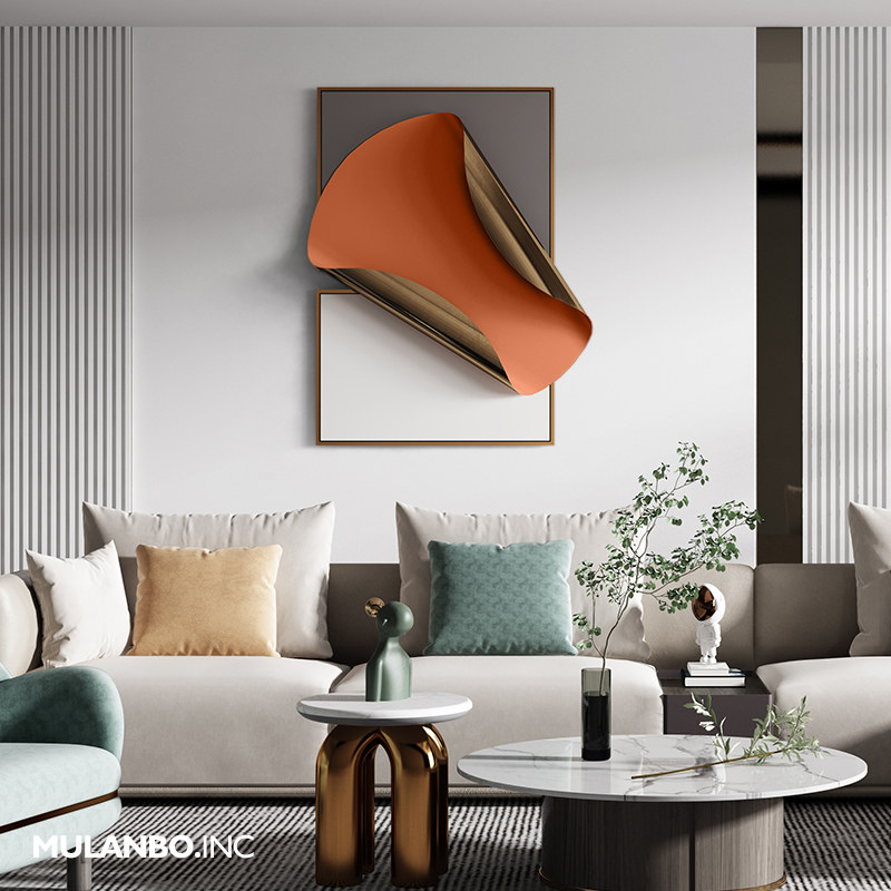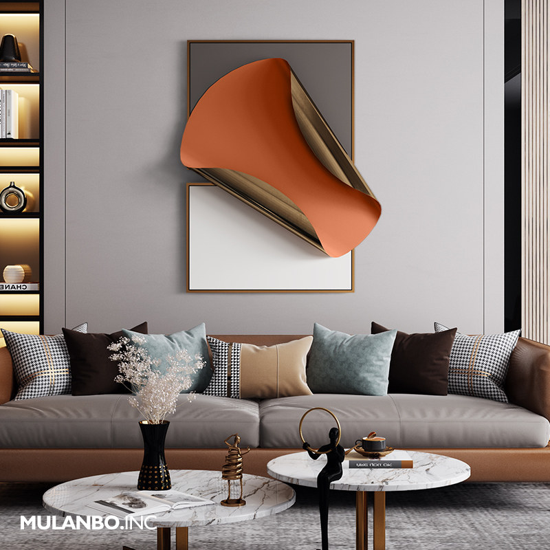 Italian minimalist sofa background wall luxury living room wall decoration hanging bed wall decoration round iron wall painting