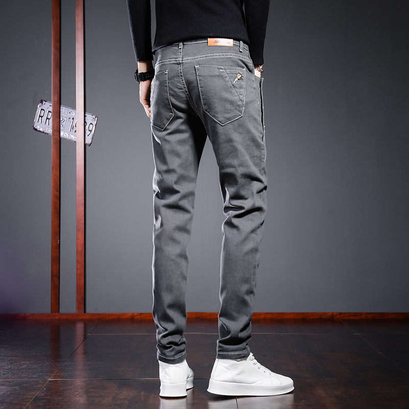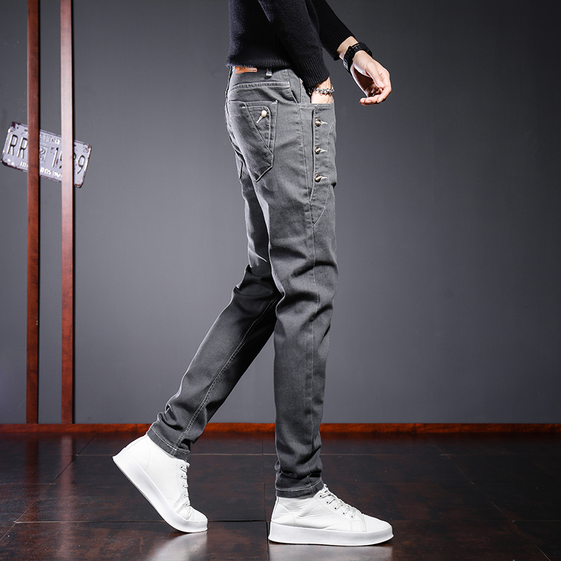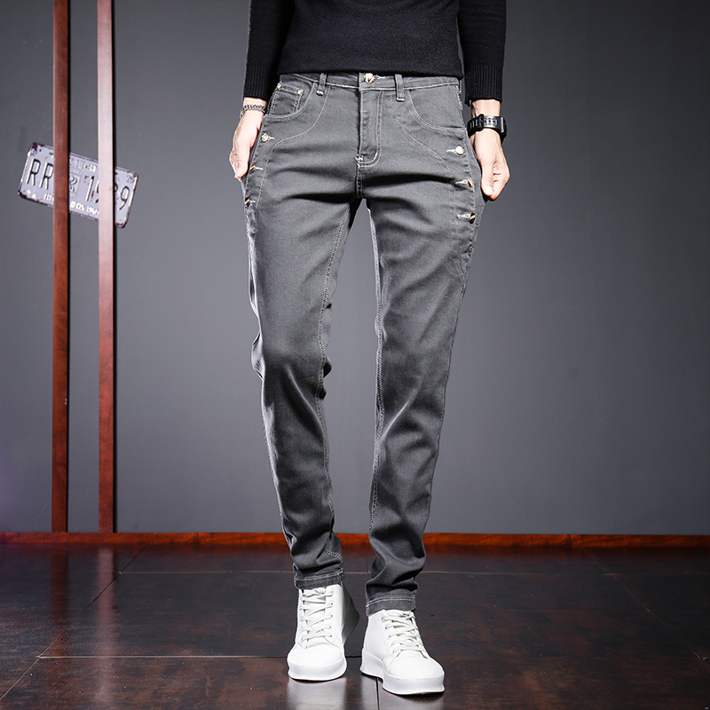 Hong Kong 2022 springtime jeans Men's boomers Body Small Feet Korean version Fashion personality Elastic High-end Long Pants Spring Autumn