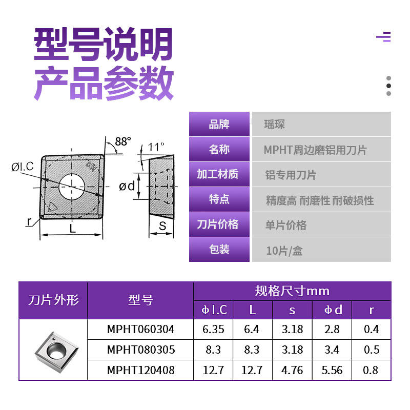Zhuzhou Three-sided Numerical Control Milling Cutter Sheet MPHT060304 120408080305 Perimeter Mill Aluminum Use