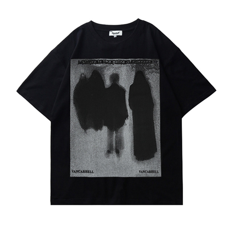 ZOROHOM dark style graffiti figure silhouette round neck short-sleeved T-shirt men and women loose summer trend bottoming shirt