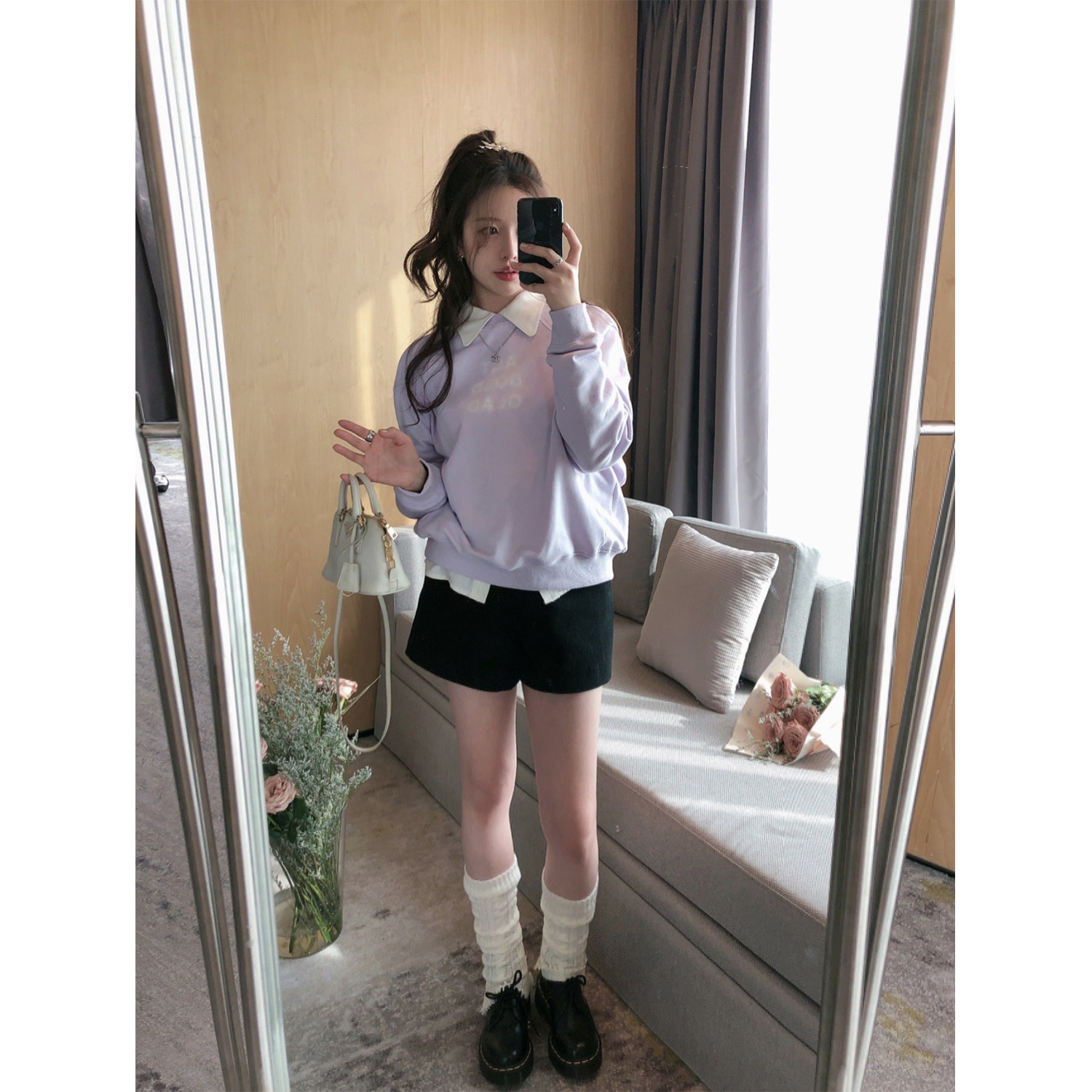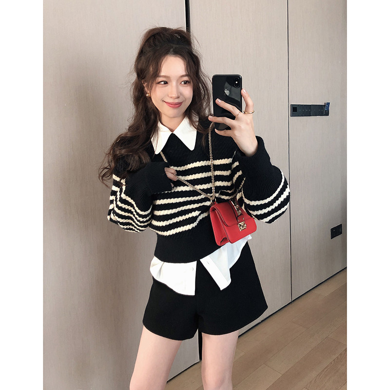 TMH STUDIO 50 wool small high waist shorts women's black slim wide leg pants casual pants summer