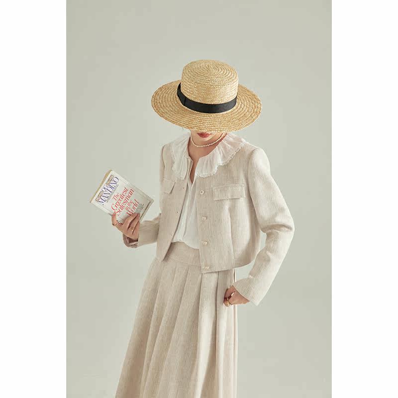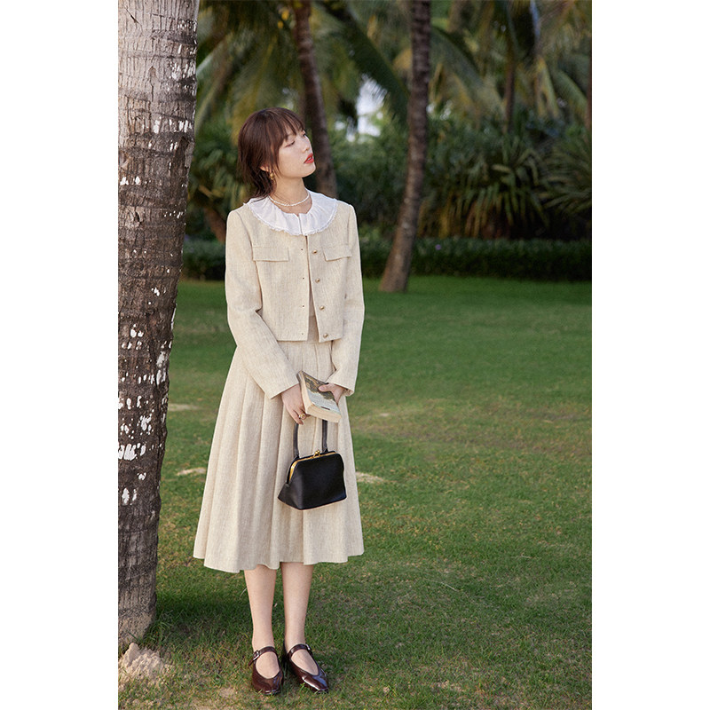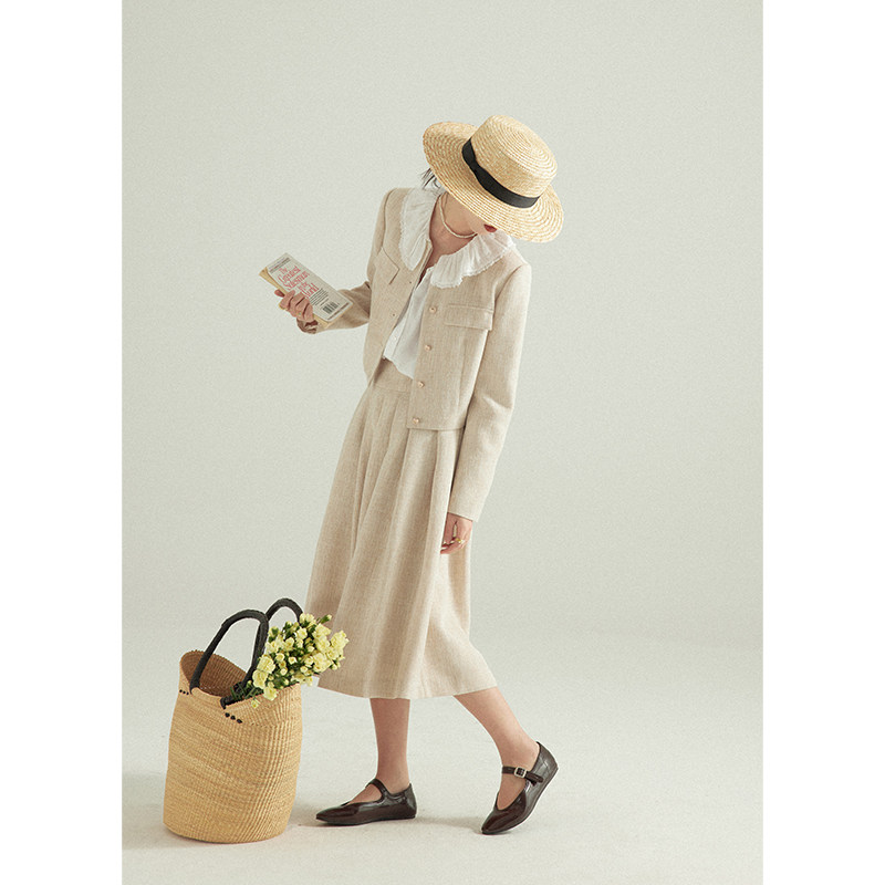 Beautiful emperor easy to play with imitation hemp fabric small scented wind suit jacket half body skirt and two sets of 2022 spring