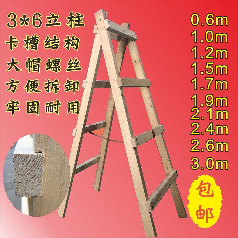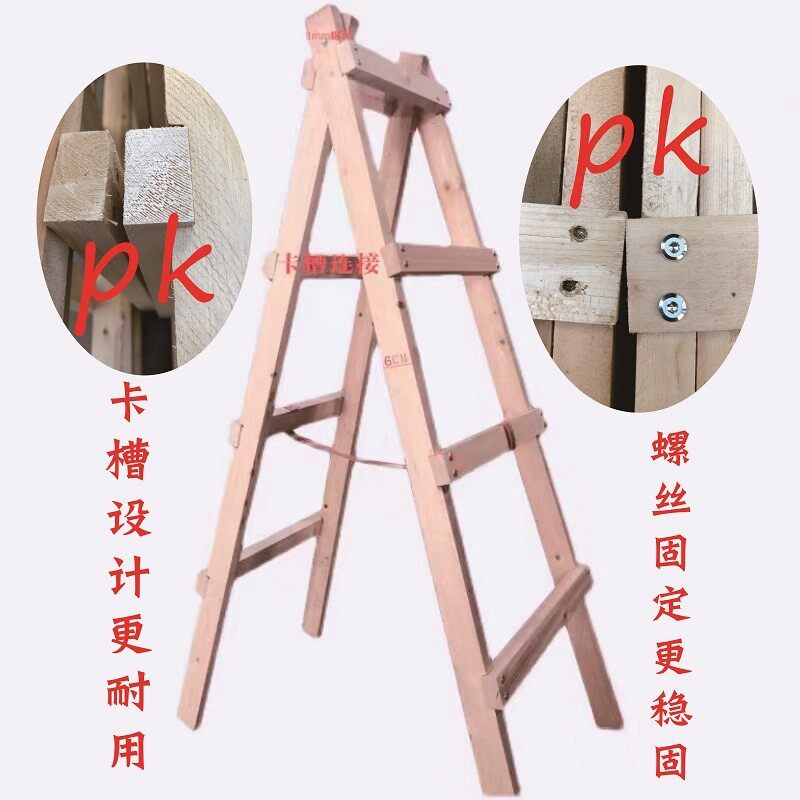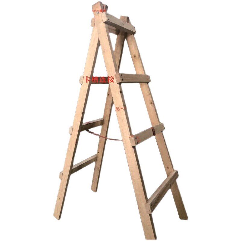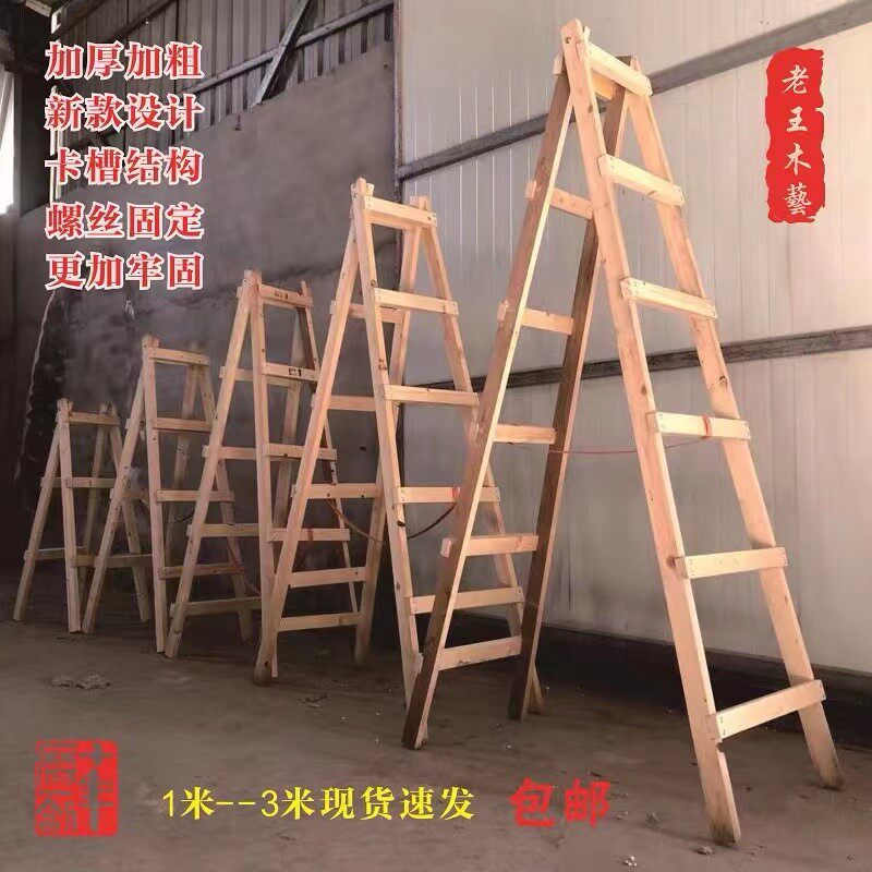 Plus Thick Wooden Ladder Man Character Ladder Furnishing Wood Ladder Double Side Wooden Ladder Engineering Ladder Home High Hydro-electric Man Character Ladder Wood